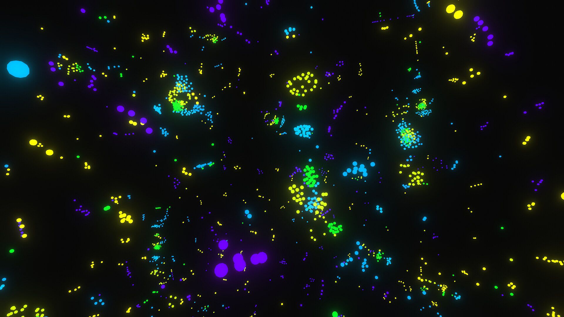 Create artificial life forms in a relaxing, colorful simulation game driven by particle interactions and forces. Watch unique emergent behaviors unfold as particles attract or repel each other across eight different colors. Switch between 3D and 2D views, hide the user interface for immersion, and tweak settings on the fly to shape how simulations evolve. Randomize setups for surprising results, save your favorites to your PC, and explore endless artificial universes. This particle simulation draws from established inspirations like Clusters and Boids. Perfect for creators who enjoy hands-on experimentation and discovery in a serene environment.