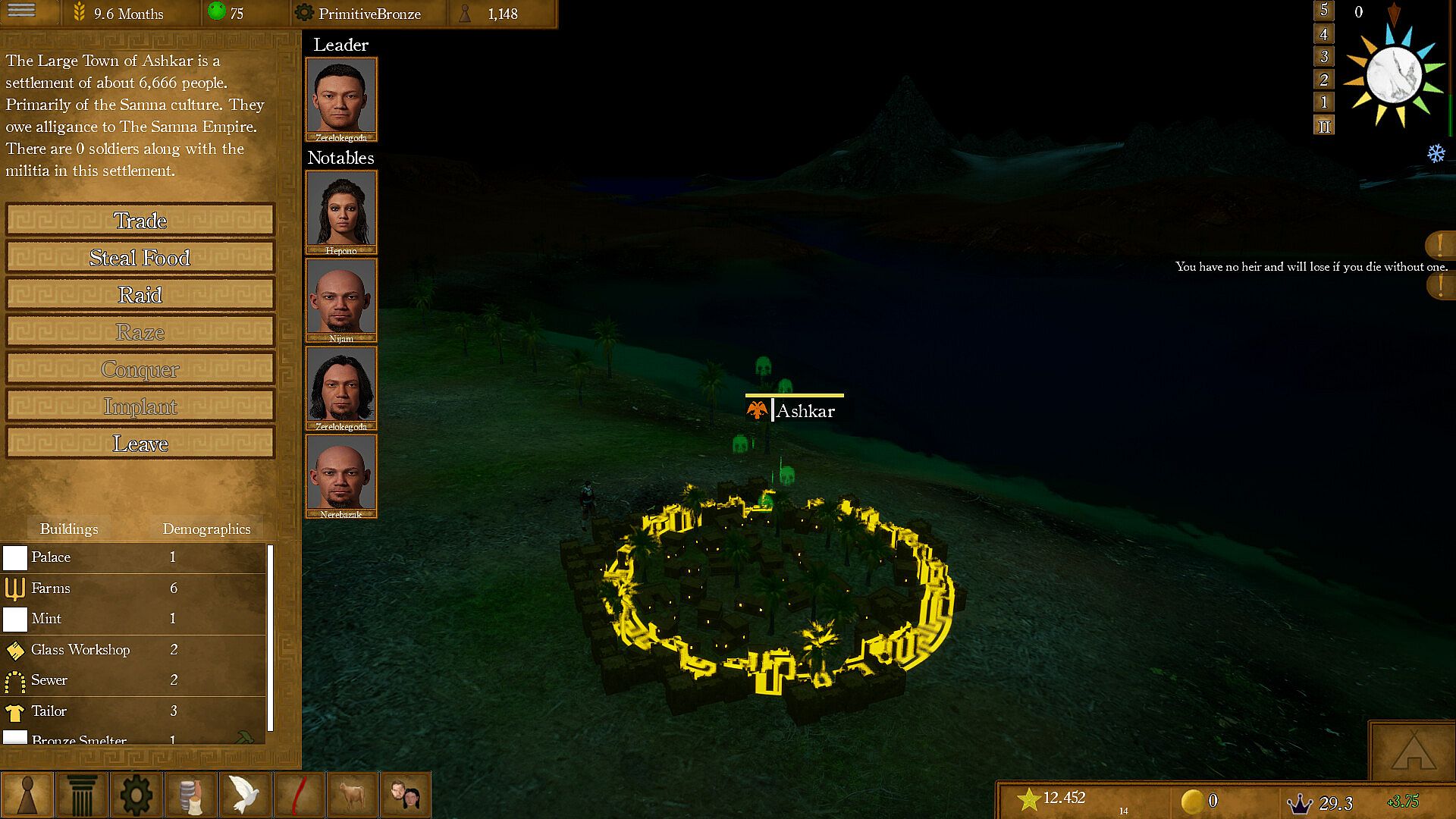 Gather notables from amongst your population and use them to grow your dynasty, a strong dynasty is crucial for survival but be aware of those plotting against you.