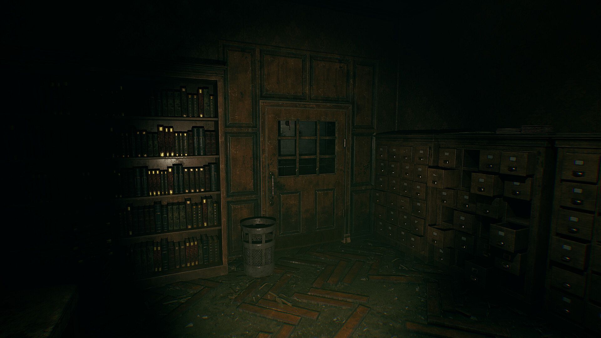 Every file you find distorts the feeling of the space - subtly. Light flickers. Paths feel less certain. Whispers twist. And always, the thing hunting you grows closer.
