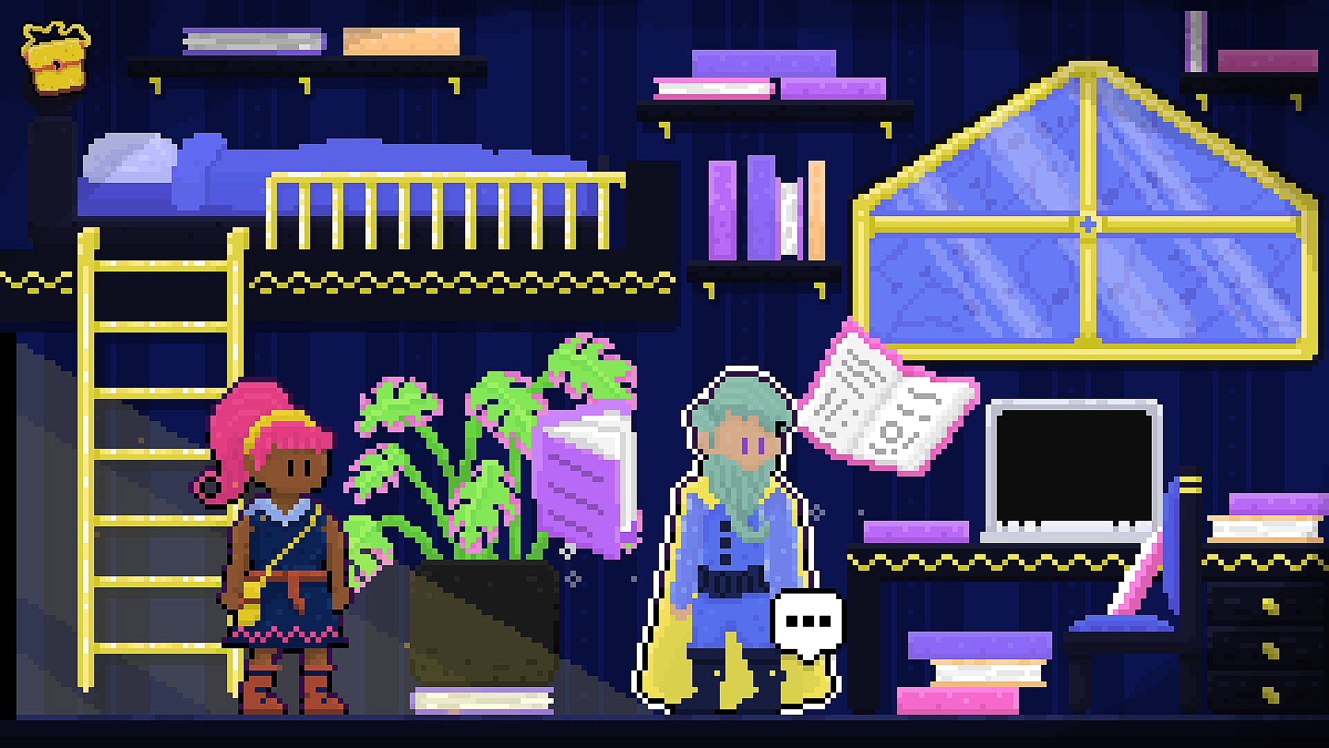 Enjoy handcrafted pixel environments ranging from a library, to an office building, to a small village and its beautiful meadows.