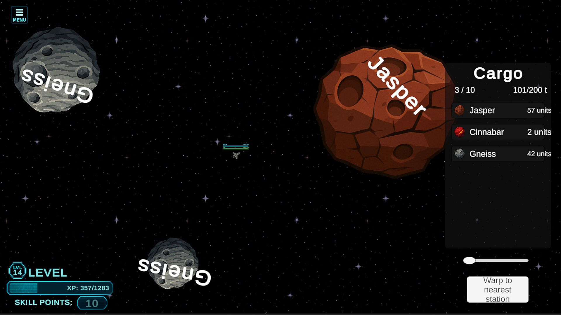 Deep Mining Gameplay – Scan asteroid belts, lock onto targets, and extract valuable ores with precision.