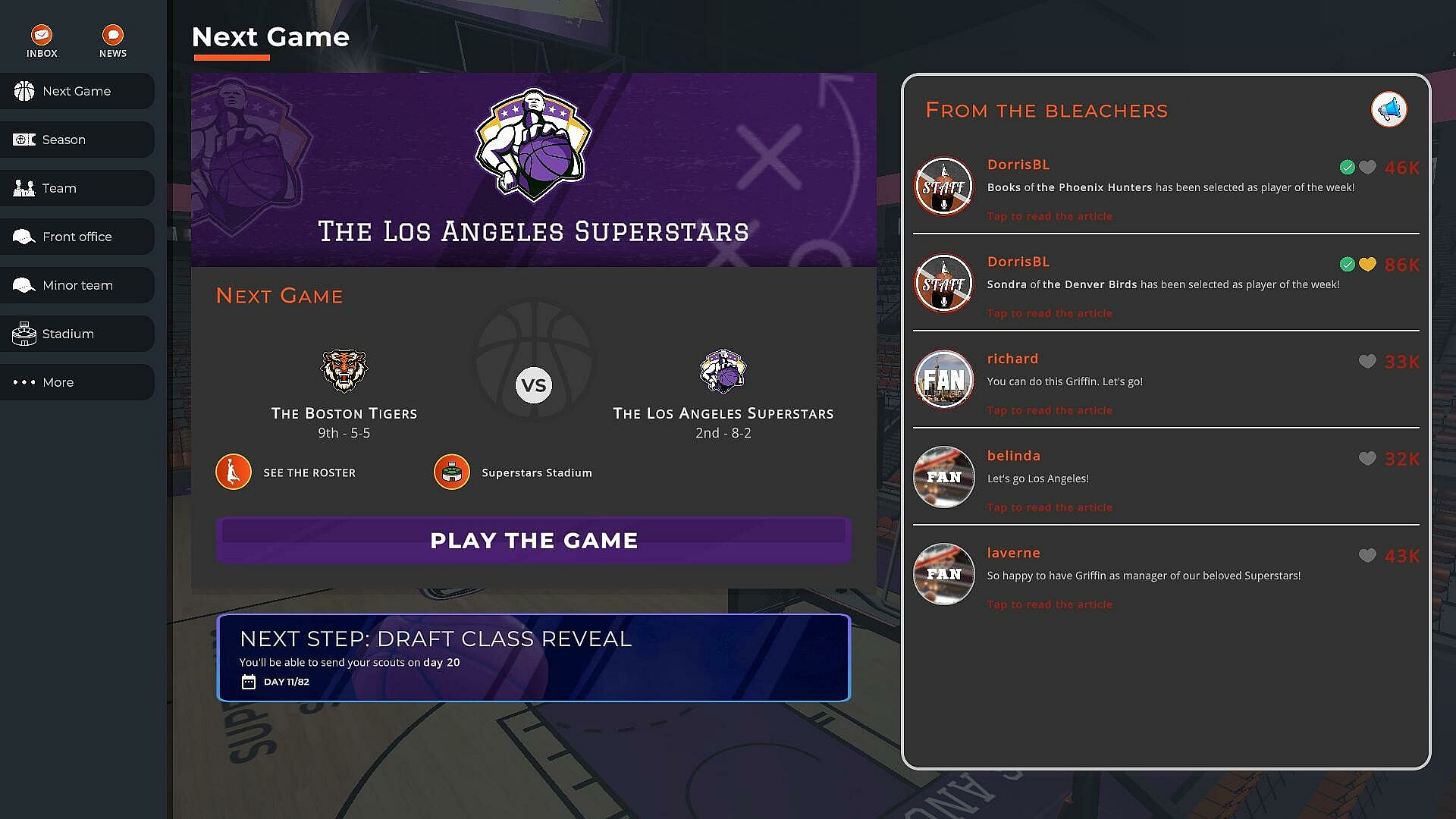 ABK features a deeply simulated world. Fans are posting about your team. Players send you messages about their contract. Or you might have to decide what's for dinner. Not even mentioning the scary coach Regina Dargor!