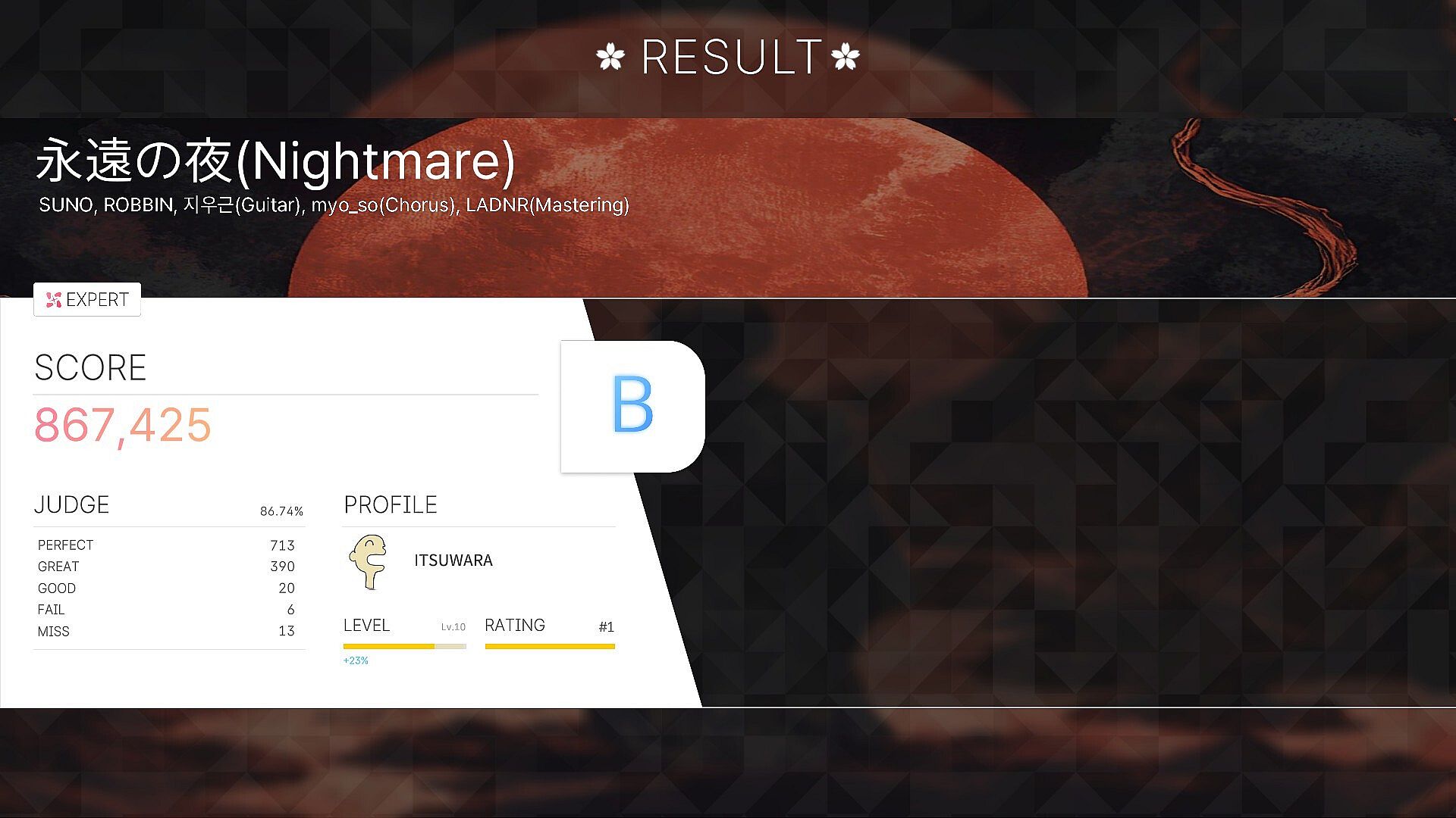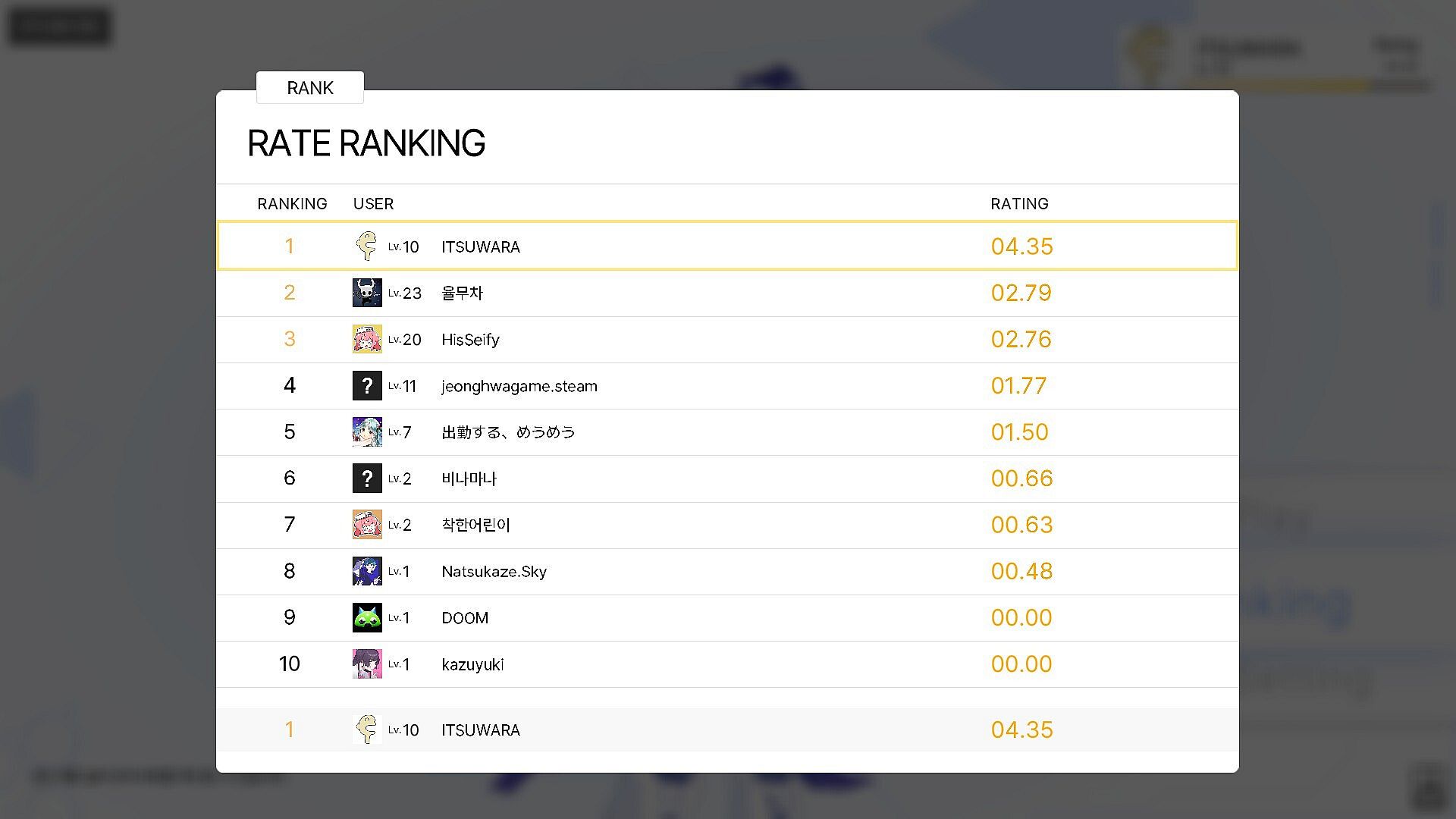 When the play is completed, the user's rating will be aggregated according to the unique system of Astra Moment:DIMENSION. The aggregated information can be checked by the ranking leaderboard, which can check the records of other competitors.