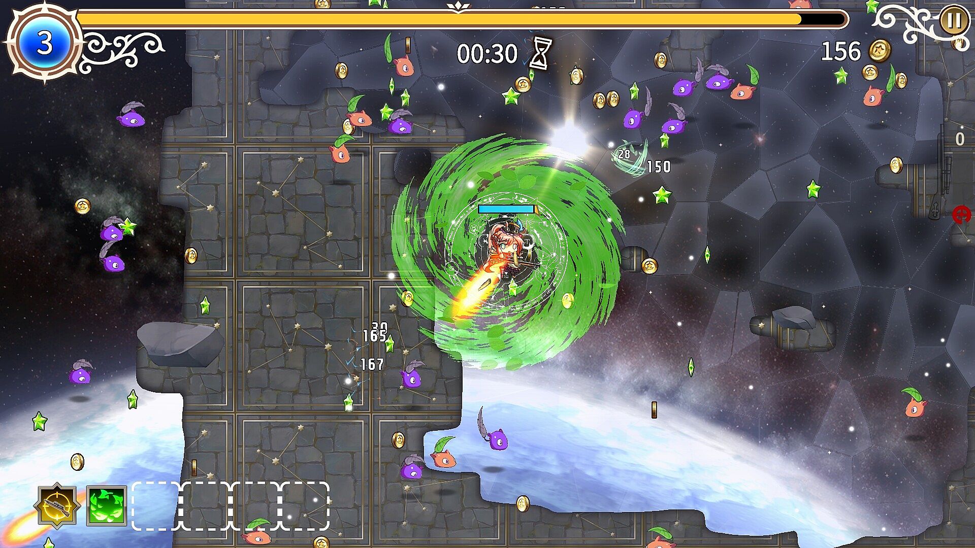 Face relentless waves of Void monsters with agile movement and precise aiming. Master timing and direction to clear enemies in style! Experience the tension and rhythm of a top-down bullet hell shooter with satisfying feedback.
