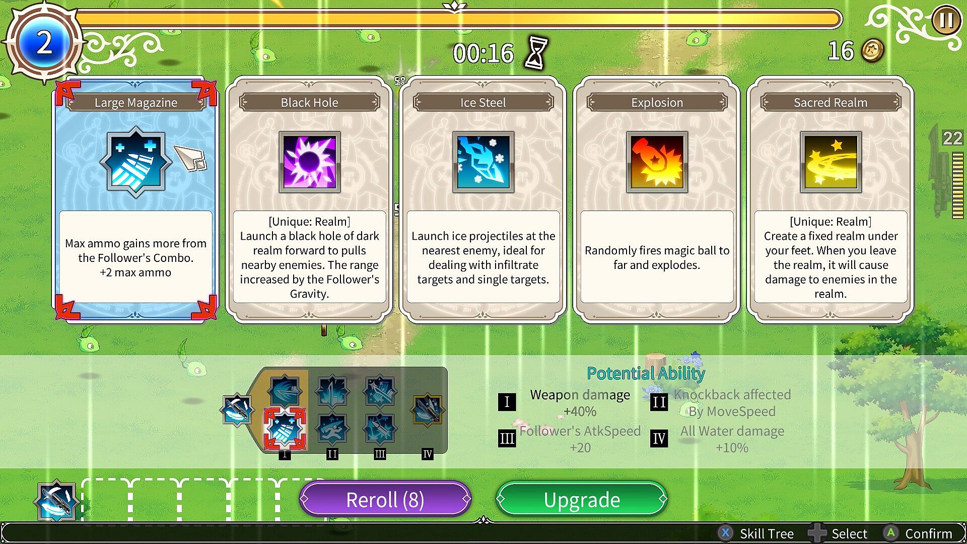 Level up, branch out, and reinforce your build the way you want. Plan your upgrades carefully and select the best skill combinations from randomized choices to increase your chance of survival.