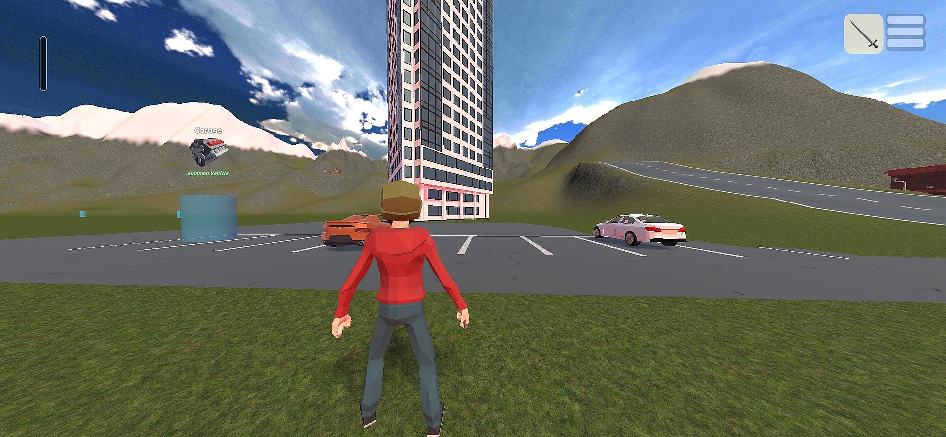 Vehicles can be bought with in-game currency or spawned freely in Free Build. Shops exist as part of the pause menu, with more systems to come in future updates.