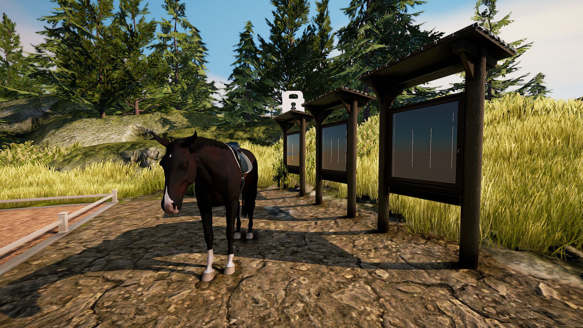 Show jumping prototype - The initial iteration of the show jumping system is now available for testing. Observe how strides impact the horse's jumping capabilities and master the art of creating the ideal lineup for jumping. Select between a variation of training courses and timed courses and compete against your friends for the best time scores! Try out the cross country jumps placed around the country-side and challenge yourself in rough terrain! Stay tuned for additional updates to the jumping prototype in the near future.