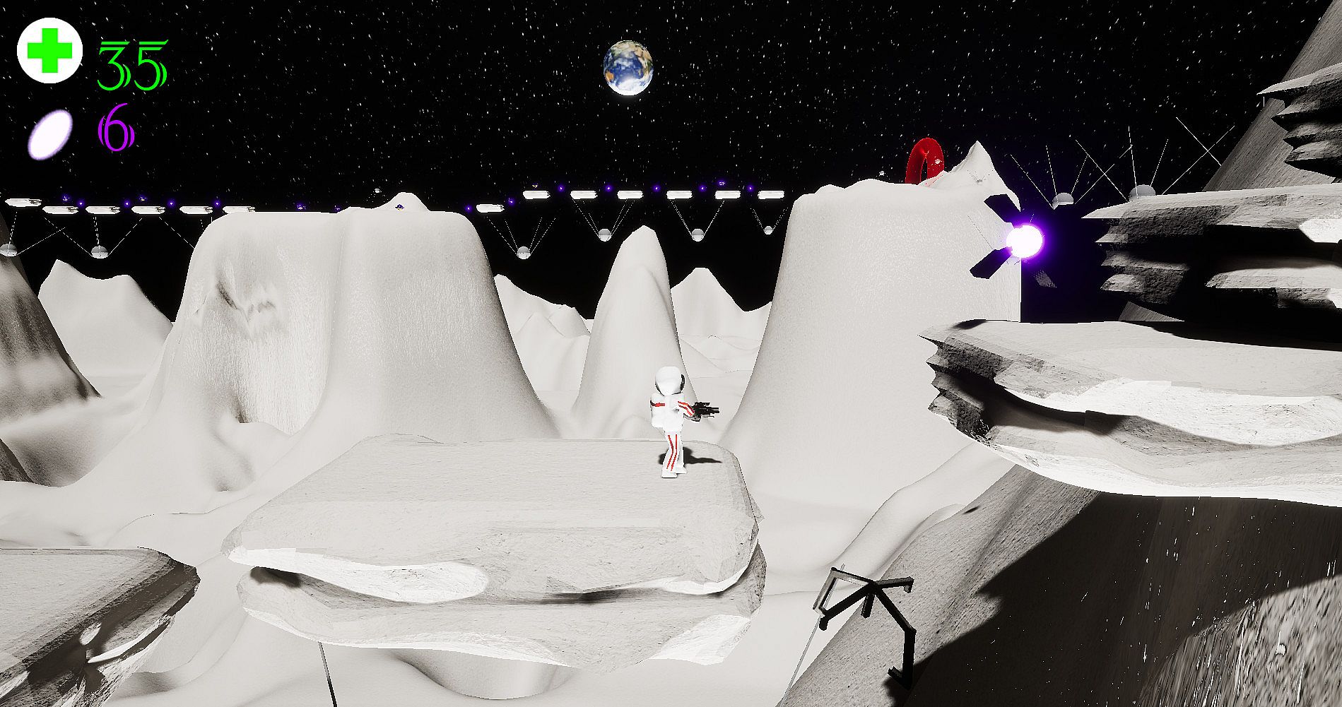Platform style game where you are an astronaut on a reconnaissance mission on the Moon. Your objective is to cross the Moon through 30 stages. Walk, jump, dodge obstacles, use your gun to fight the drones and use moving platforms to move through the levels and reach new dimensions. Despite the simple gameplay it is not a 100% linear game, as there will be times when you will have to choose which way to go, but you will only know that you chose the wrong path when it is too late.