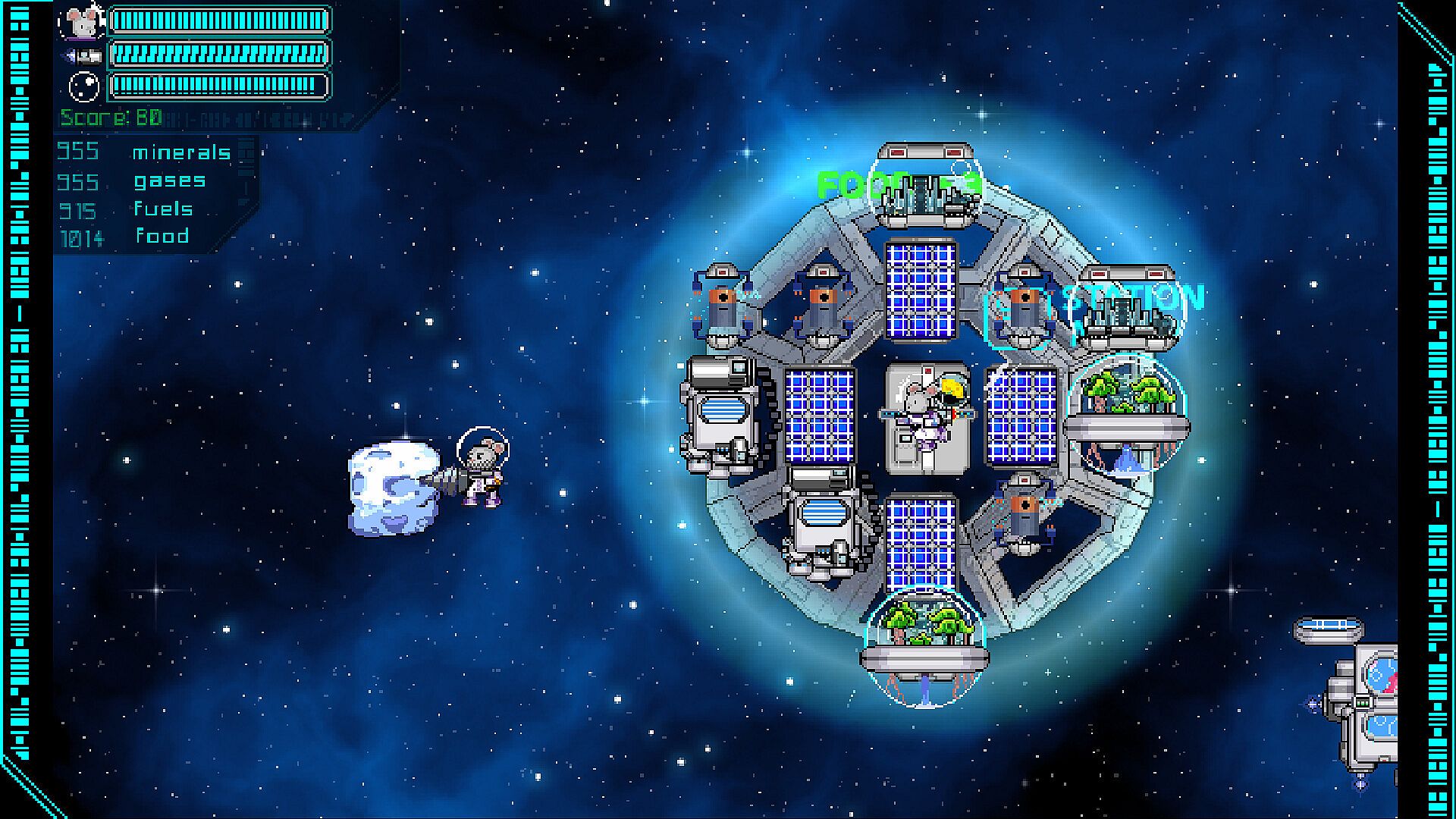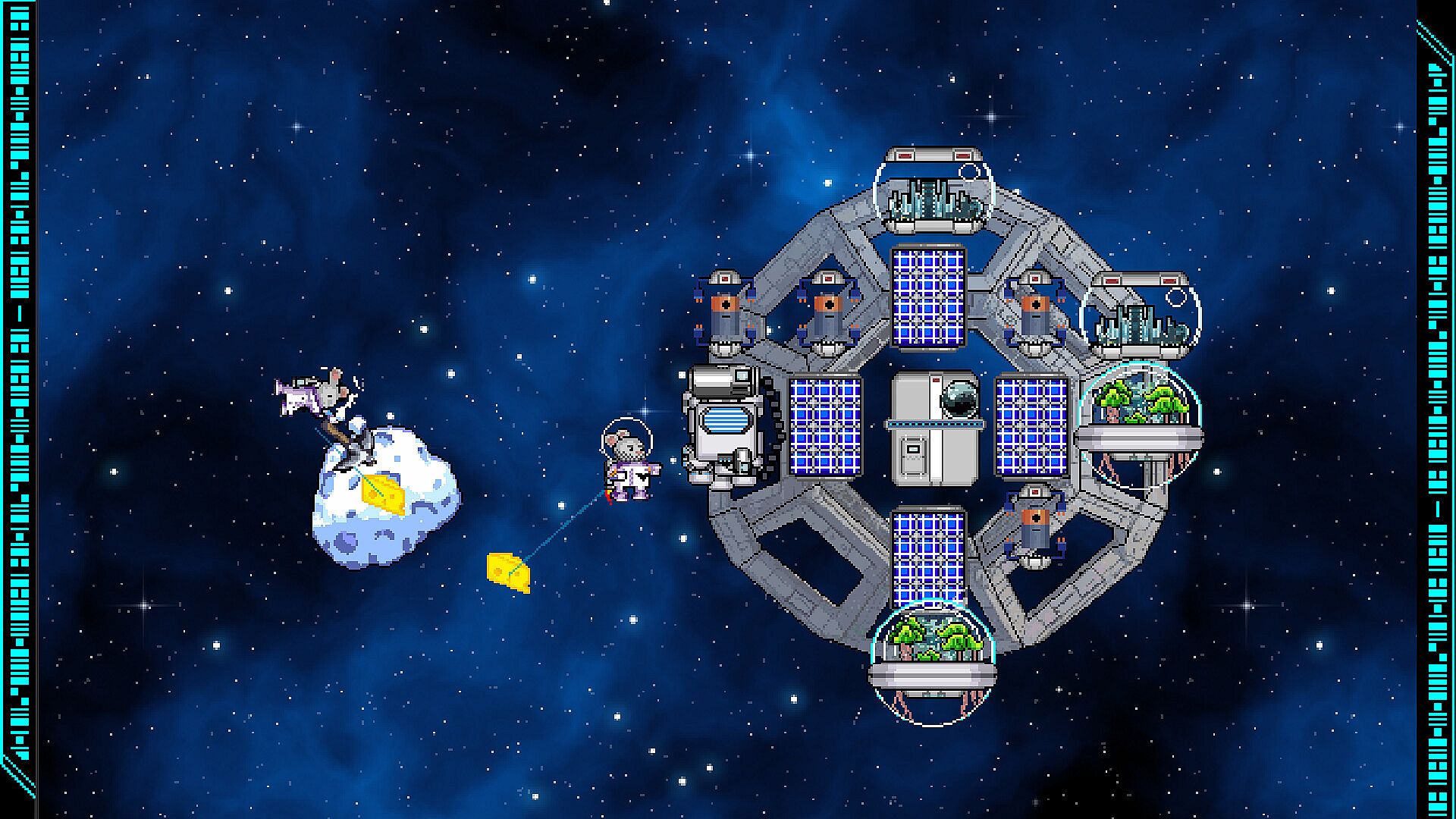 Are you mouse enough to defend the galaxy? Well strap in, Cadet! By your intrepid actions, you stand to become the architect of mousekind's next great leap into the cosmos. Explore the vastness and voids of space, discover ancient moontemples and strange relics, and build a new home for your species-- one pixel at a time.