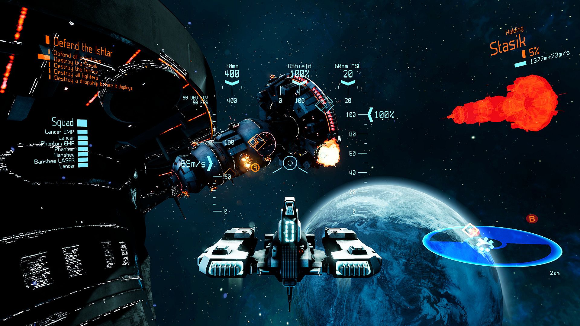 To survive, you will master your spacecraft and strategically manage your squad. Command squad-members to guard areas, strictly hold positions, or rearm at the nearest hangar bay. By flying as a medic, you have the ability to repair and rearm your fellow wingmen. Protect yourself from enemy fire with anti-gravity. Use asteroids and debris as concealment from enemy-detection. Support friendly capital-ships as they reign down hellfire on enemy-positions. And, above all us, out-maneuver and outgun all who cross your path.