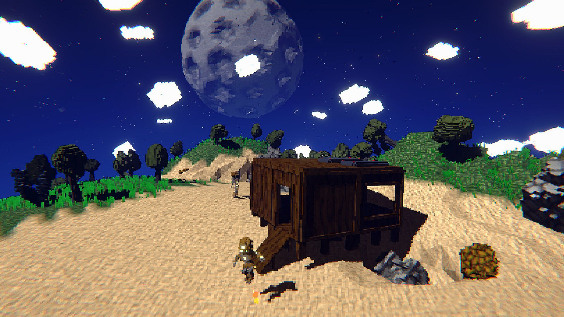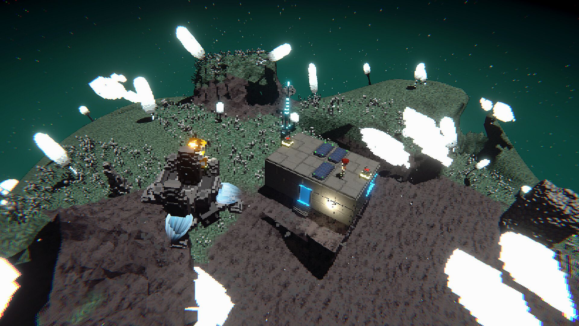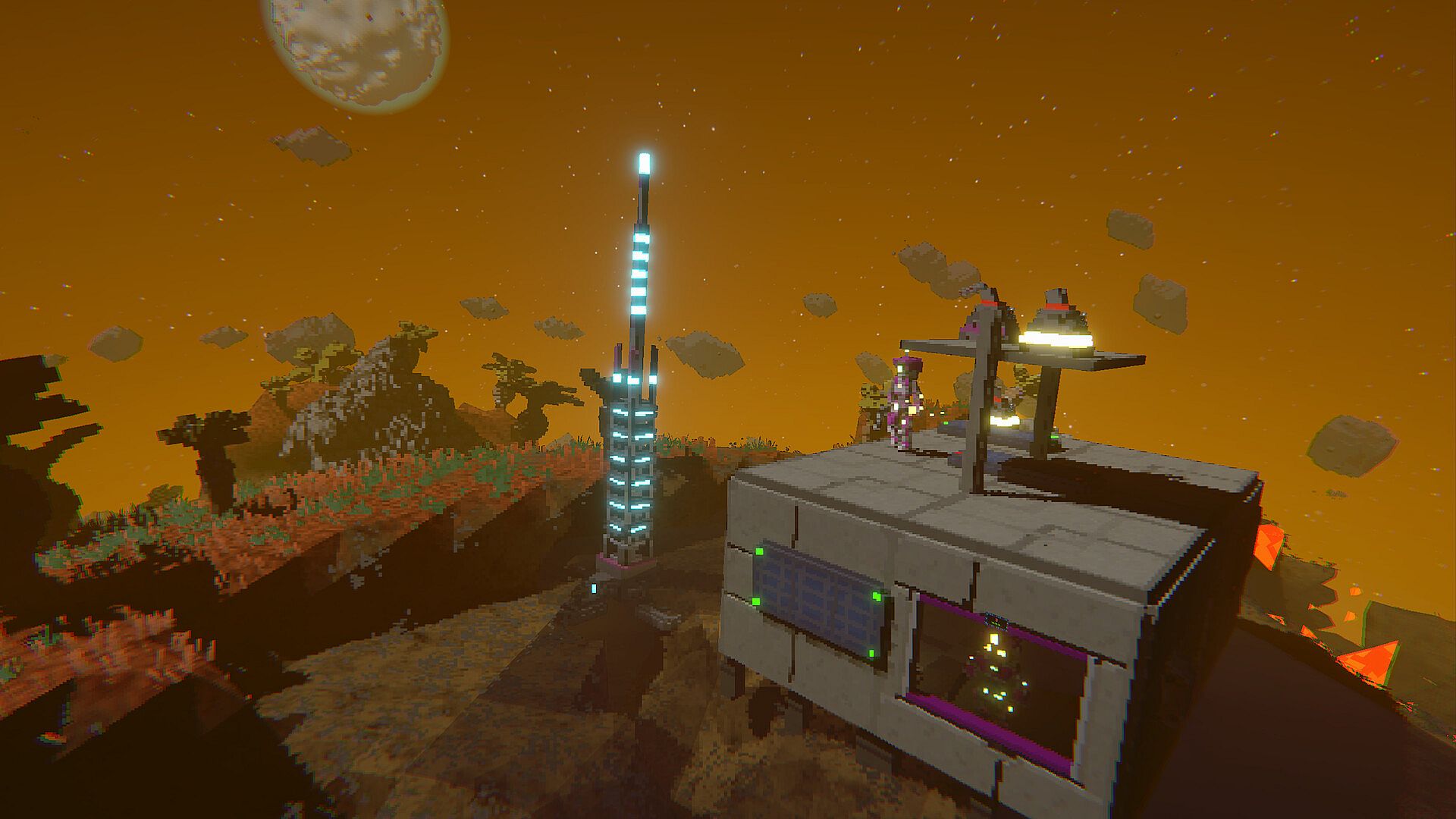 Astromine is a co-op survival game set in a fully destructible voxel solar system. Every planet, creature, and structure is made of voxels with real physics. Dig through worlds, collapse walls, burn bases, and carve into alien monsters.