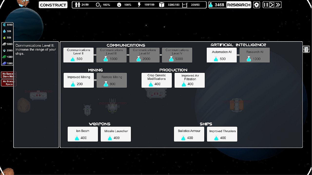 Spaceships can be customised to suit certain roles, e.g. mining ships ships can be fitted with a lightly armoured hull but a large storage capacity. Combat ships can be equipped with heavier weapons and enhancements like shields.Construct and Manage a Space Station