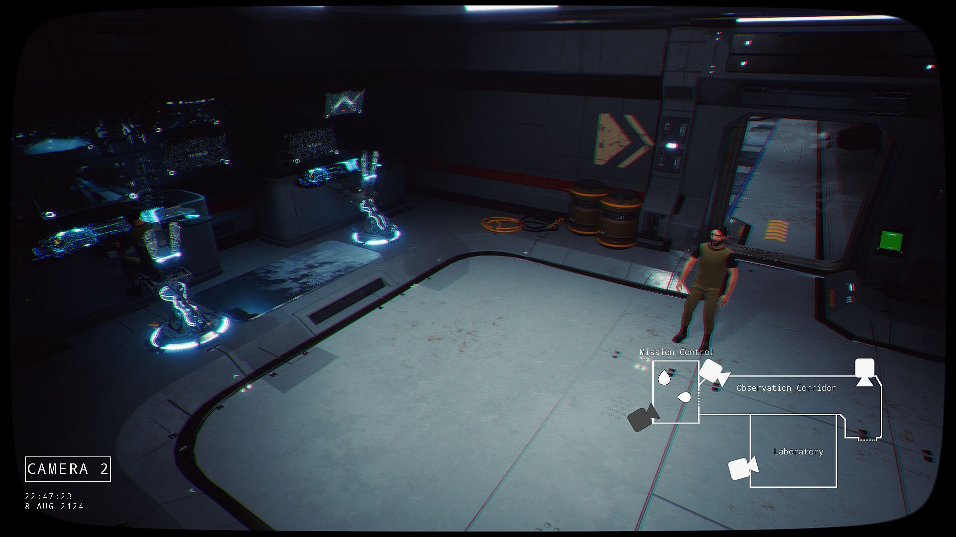 Play as mission control - Yang Sungbin. Even though the monster is invisible to the naked eye, security cameras can reveal his location. Take control of them to help the other player navigate the spaceship safely.
