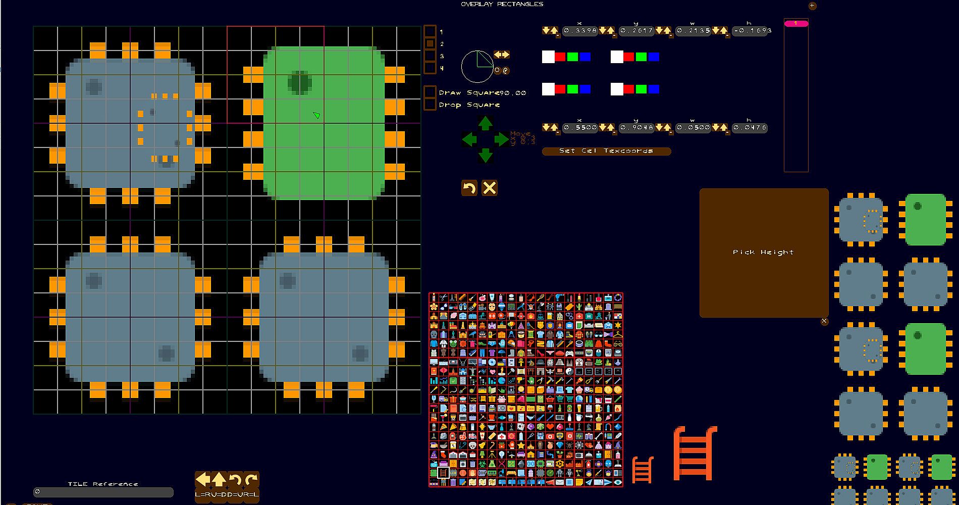• Pair customized tilesets with heightmap and normalmap data using a simple cyborg algorithmic and artistic way of building heightmaps as you customize tiles, using a provided height atlas.