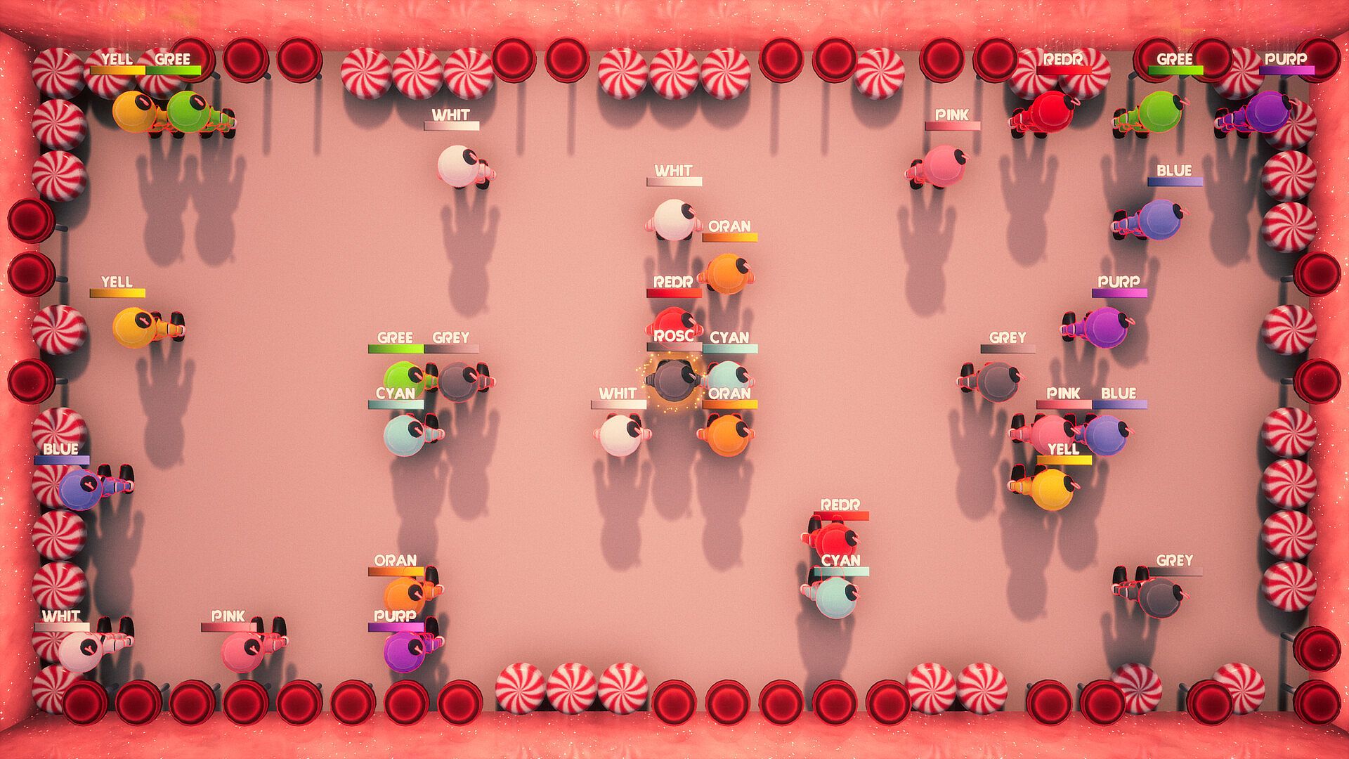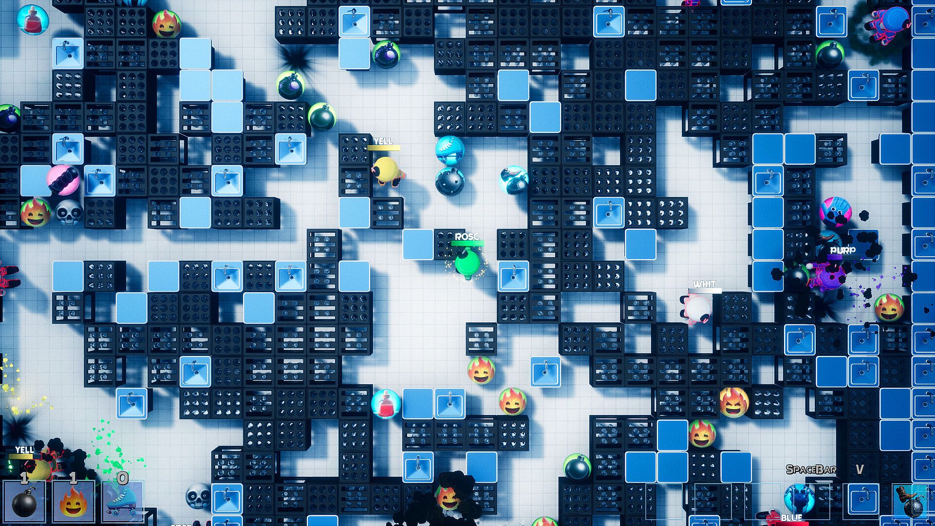Be the last player standing to win the round - and the first to win all rounds earns a bonus powerup at the start of their next match.