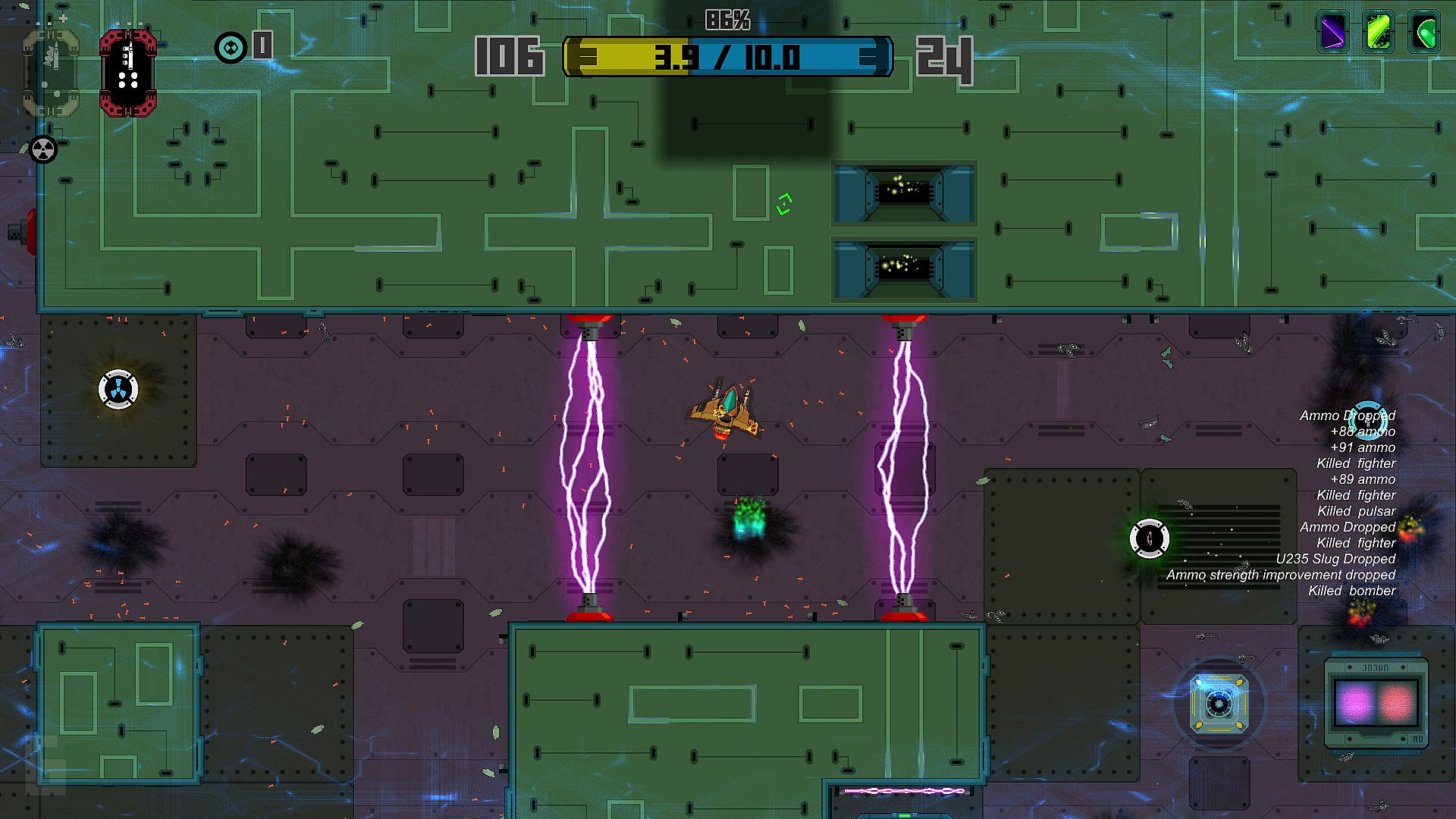 - Engage in fast-paced twin-stick combat against enemy spaceships