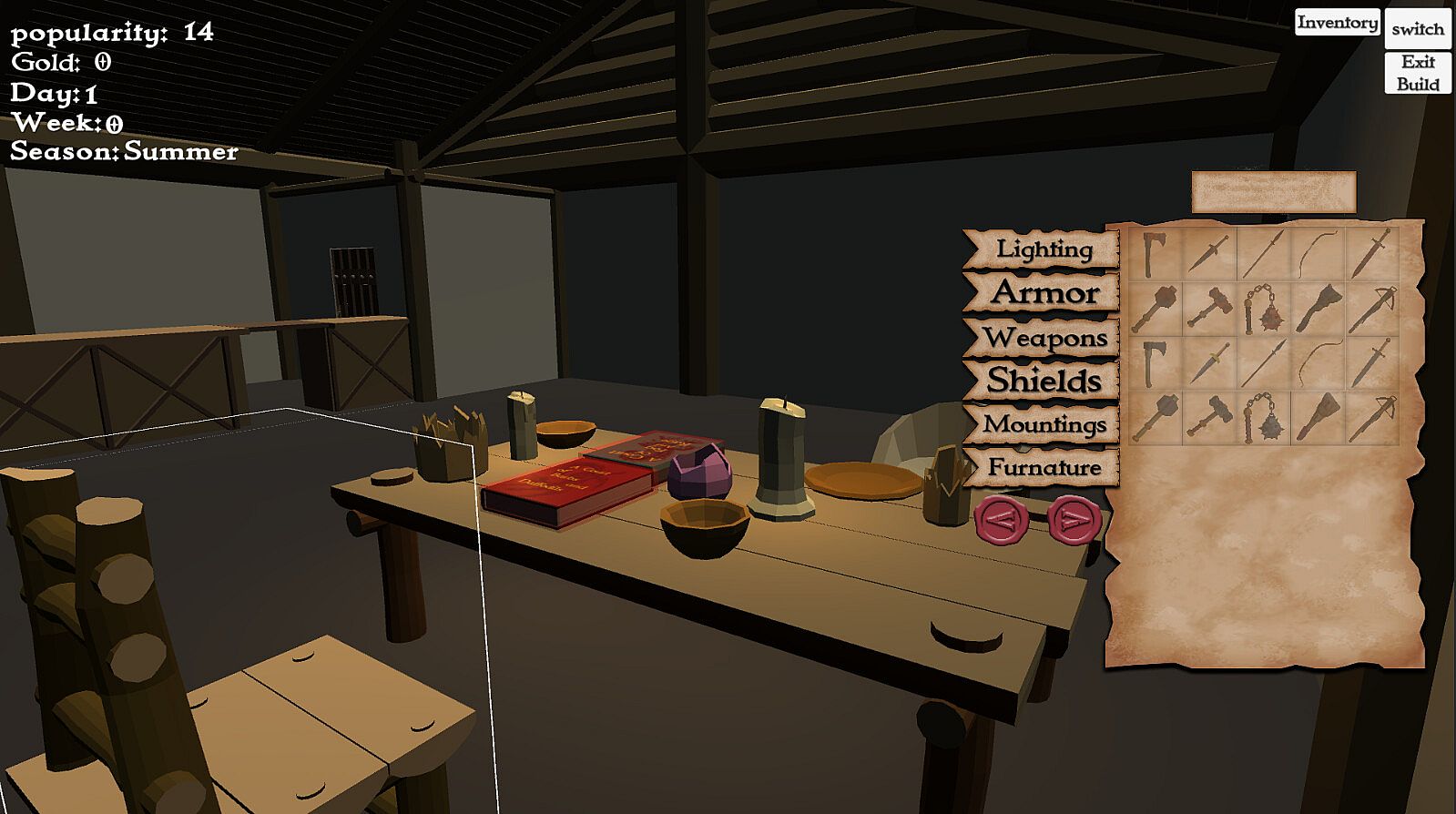 Atoyo is a tavern decoration game inspired by TTRPG parties and their eventual homes or bases of operations, where the party gathers and displays trophies, discusses battle plans, and live and train while not on the road.
