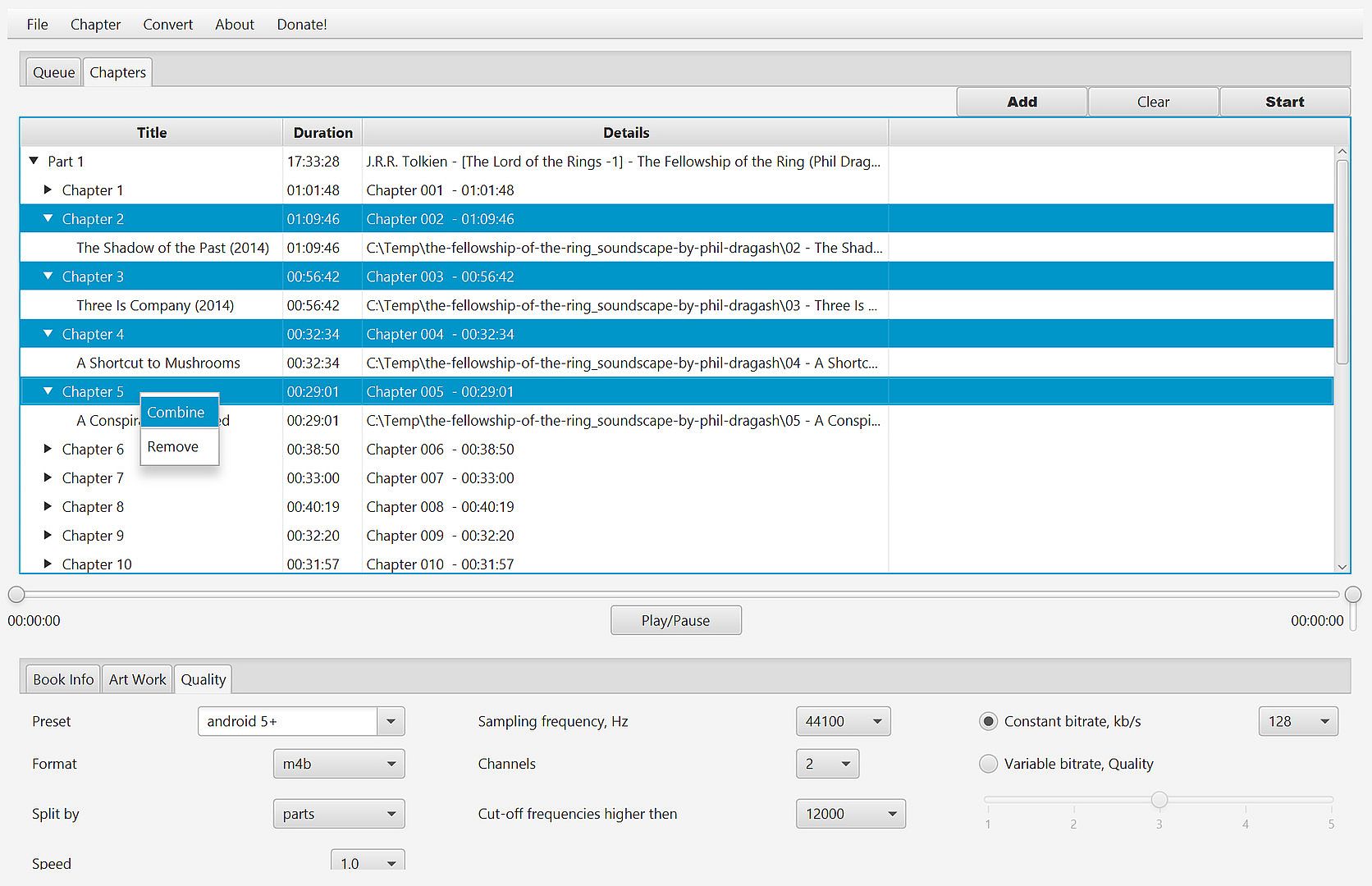 - combining multiple mp3 into single chapter