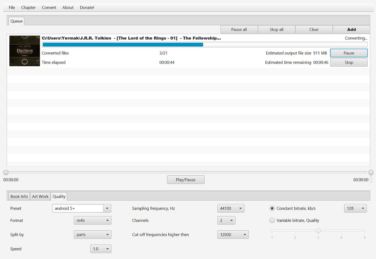 AudioBookConverter was originally designed as a simple and lightweight application to convert a set of mp3 files to single or set of m4b (aac) files to be played on your mobile device (or any device now).Now