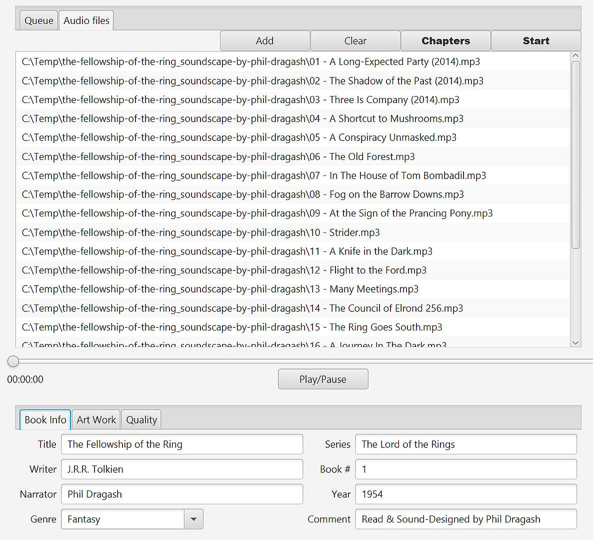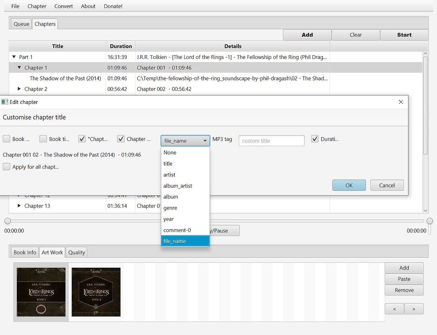 Over time AudioBookConverter evolved and currently can support conversion of most of the popular formats (mp3, wma, m4a, flac) to m4b, mp3, ogg. It also can handle existing m4b files and process them with chapters, artwork and other meta information.AudioBookConverter can work smart to find relevant artwork and can do advanced chapter management.