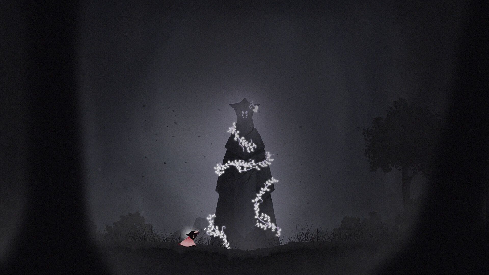 Aura is a puzzle platforming game without combat. The journey of a witch contemplating her past has big dark moments of conflict, but none are resolved through violence. Your biggest tool is connecting with your past self to change the environment and even yourself, sometimes you need to take one step back before going forward.
