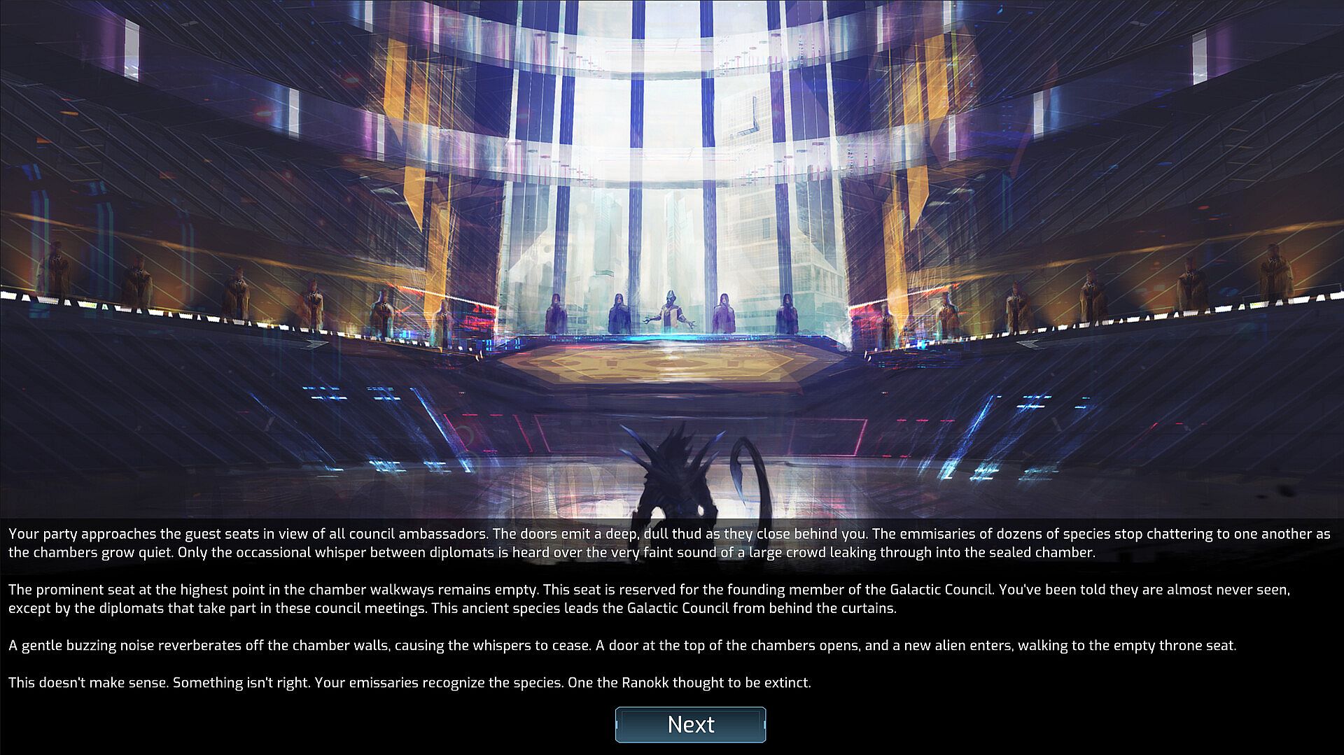 You will personally lead the military escort accompanying the Ranokk emissaries as they make the momentous journey to the seat of the Galactic Council. The Ranokk will hide no more.