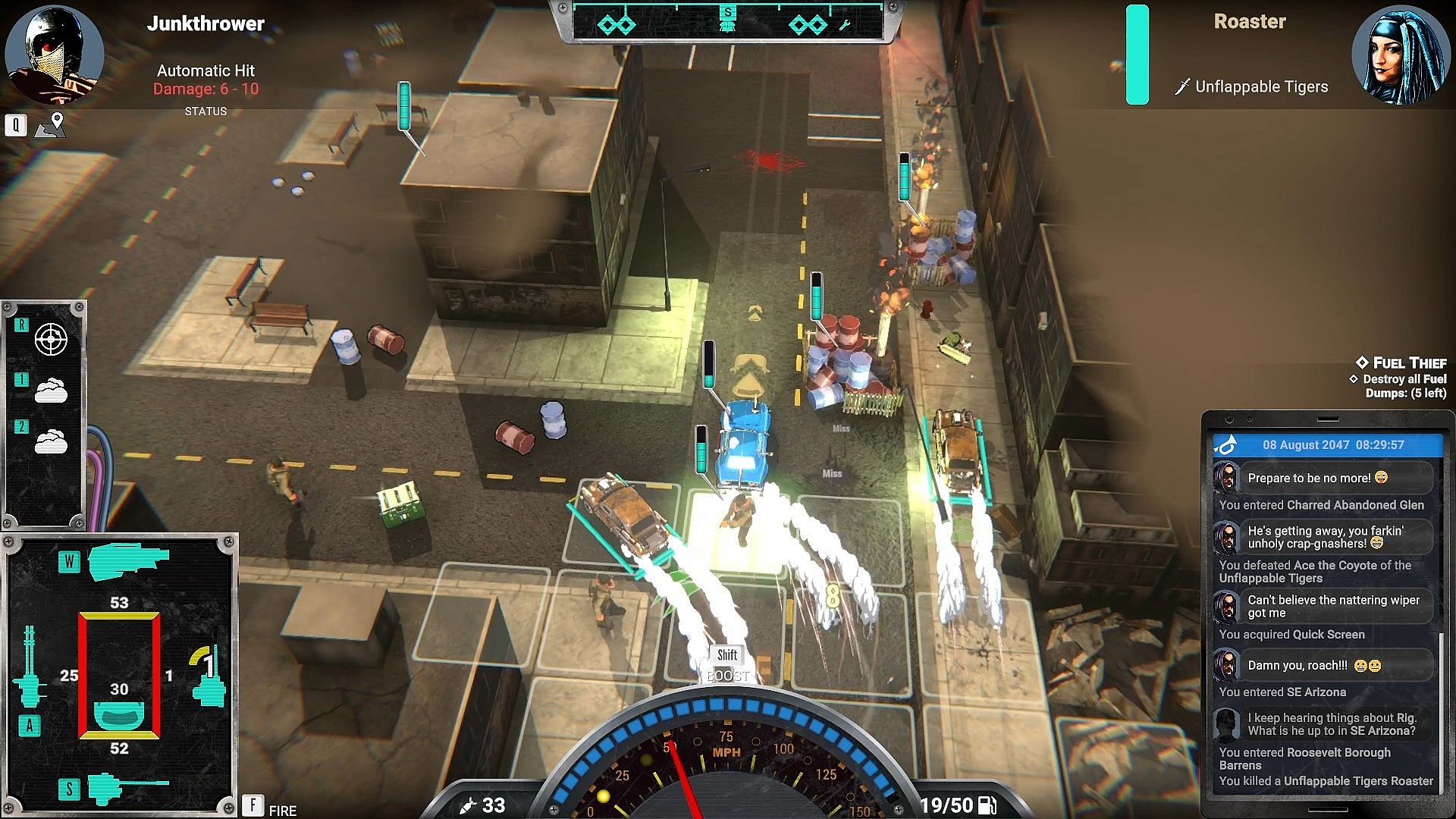 - Engage in classic car combat