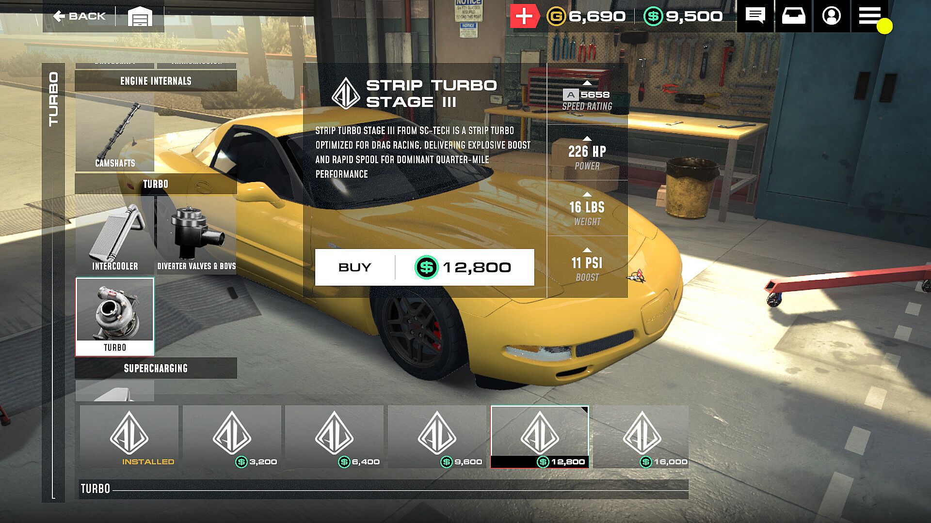 • Performance tune your car at speciality garages and get it ready for the next race.