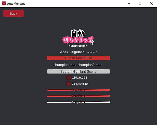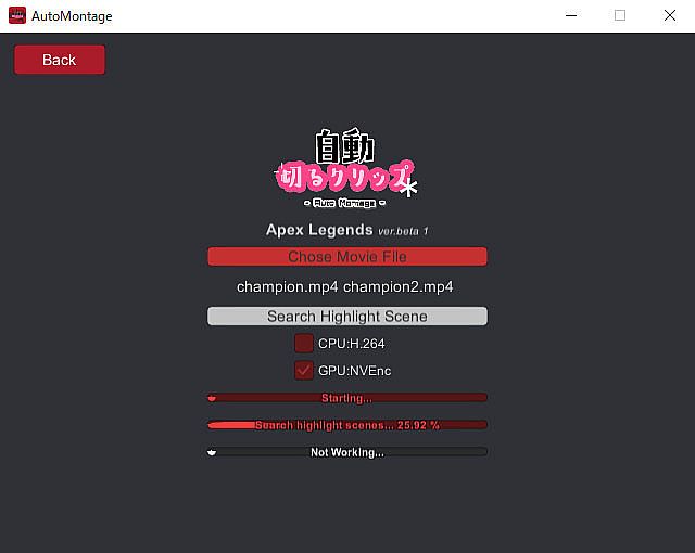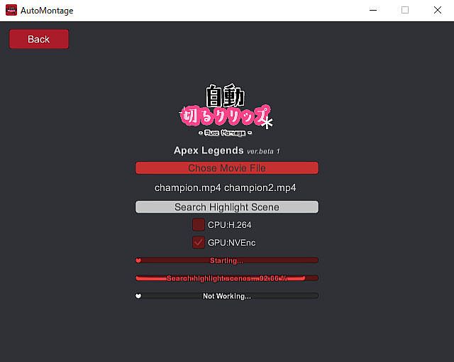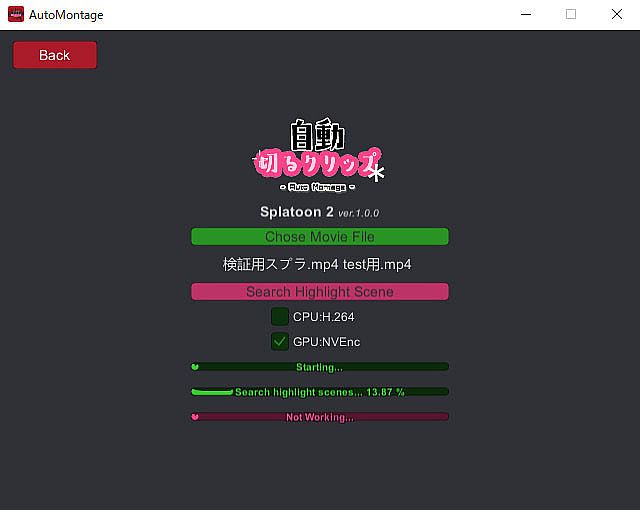 This app automatically finds highlight scenes from gameplay videos with huge playback time and spits them out to mp4 files. Consider editing a 10 hour video. I think that just looking for the highlight scene will consume one day. With this software, you can let the application do other things by letting the application edit the cuts of the highlight scenes. The app has already finished the cut edits while you are dating, eating rice, and eating potato chips.