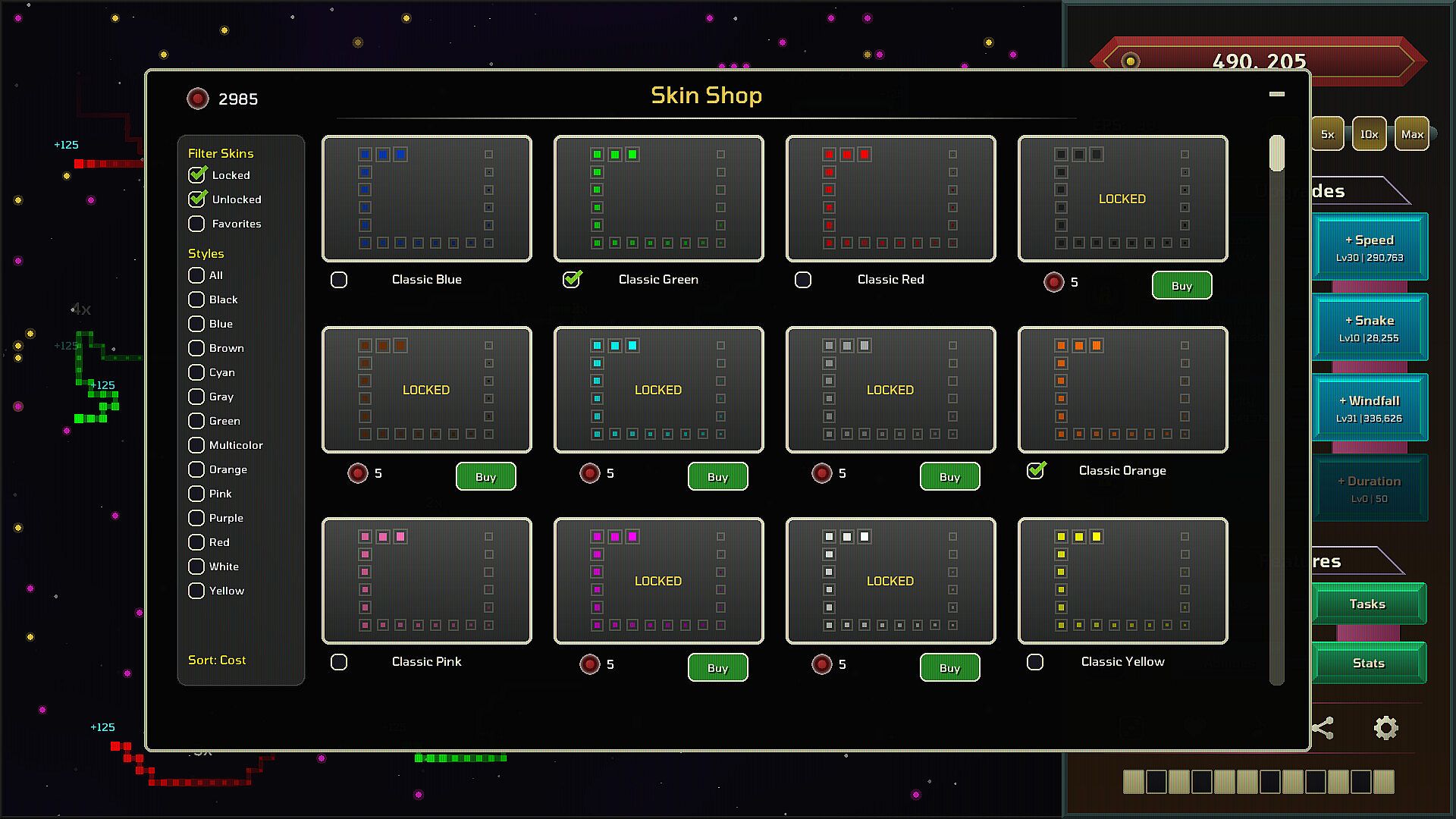 Increase your snakes’ speed and food supply. Unlock abilities and upgrades. Complete tasks to unlock new skins. Prestige for permanent perks. Beat the game to Unlock Endless Mode.