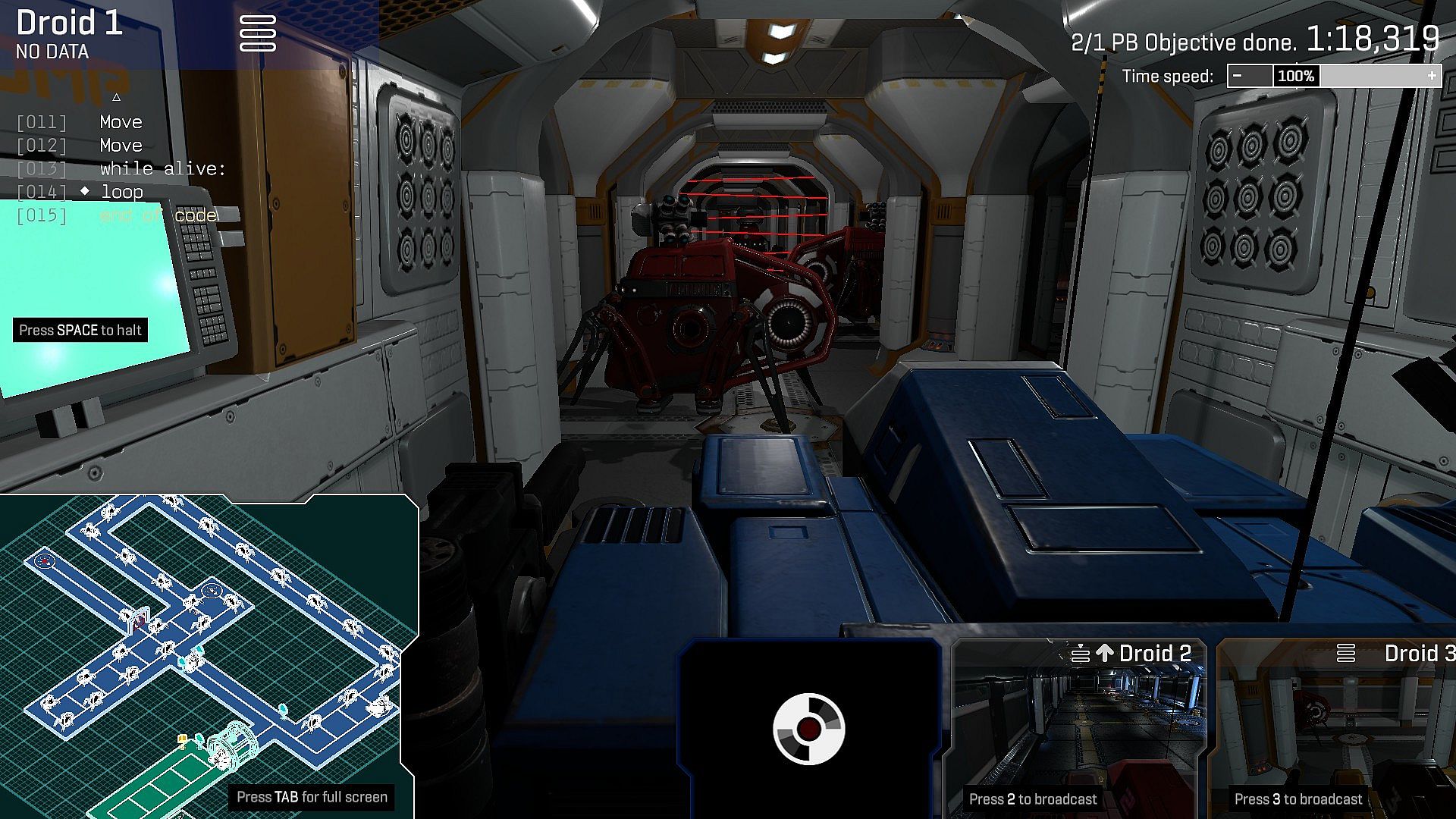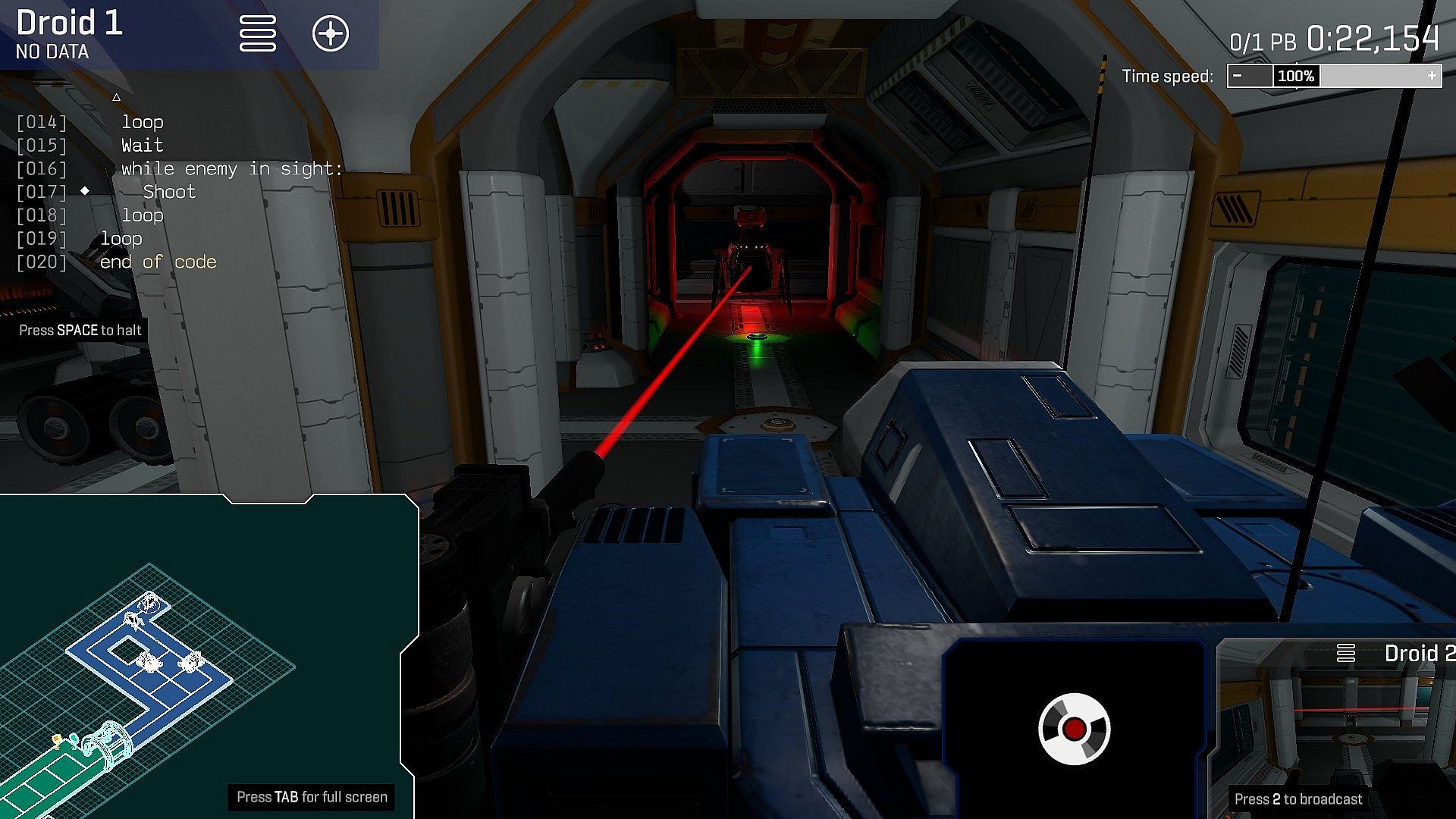 The task of each mission is to bring the requested amount of data back to the base and leave before the situation gets out of hand. For that, you need to program up to four robots to enter, fight, retrieve, and cooperate. Enemy forces are nearly unlimited, but they are weak, slow, and predictable. You are not.