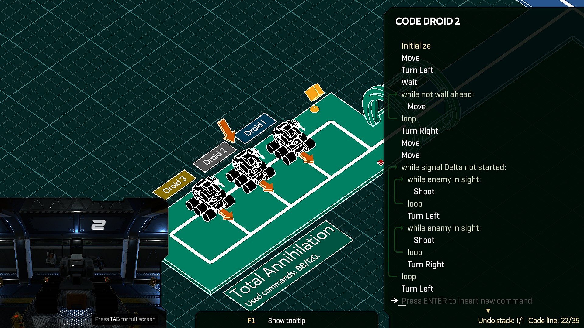 The programming language of Automatica is very easy to understand: if you are able to run a game on Steam, you are able to program a battle droid. (Winning the mission is not guaranteed.) Imagine you play a tactical strategy game, but you need to make all your moves ahead. Then you start the mission and watch your droids to rule.