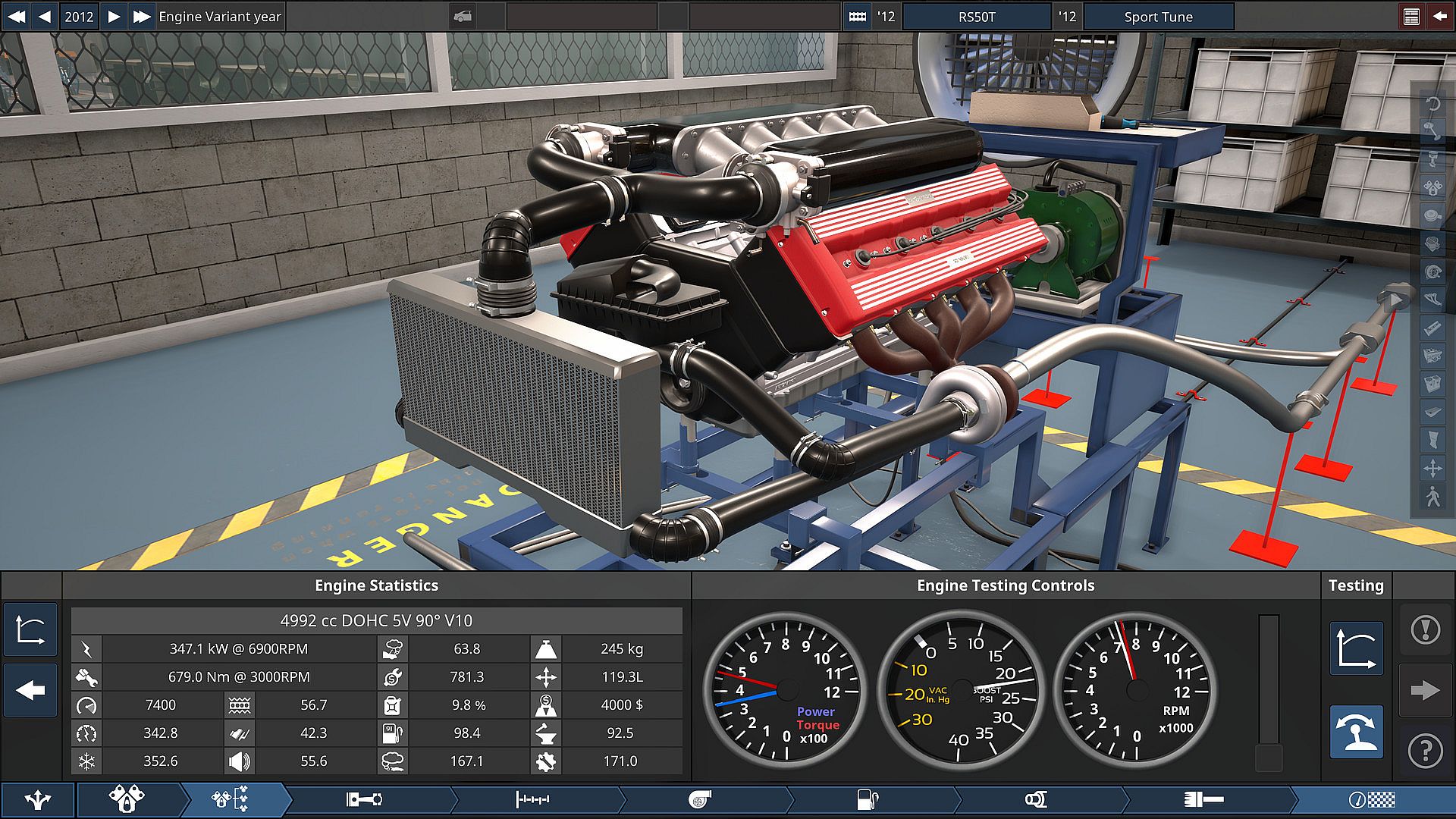 In Automation, players use the comprehensive engine and car design tools to turn their ideas into reality; shape, cut, re-shape and adorn thousands of car bodies with a wide variety of lights, mouldings and other parts to achieve the style you want. Design the perfect engine to go in your car; whether it is a large, powerful V12 or a small, efficient inline-3, nearly all common engine layouts are possible!