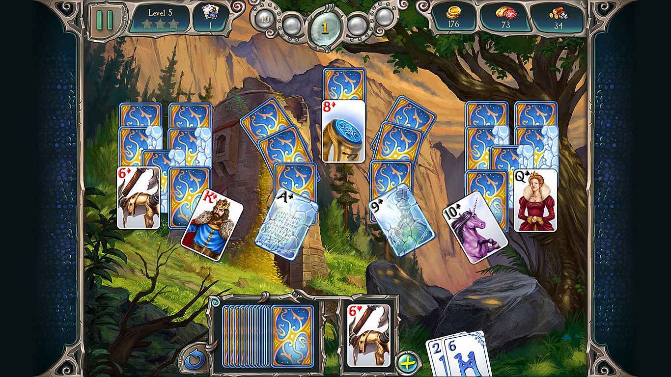 Harness the power of the cards as you travel across Avalon through 300 meticulously crafted levels of engaging solitaire to collect the resources you need to restore the kingdom to glory. Simultaneously relaxing and challenging, Avalon Solitaire 2 features 24 power-ups, over 30 buildings to rebuild and reap benefits from, plus wild cards, jokers, hazards and more, making it a must-play for solitaire fans!