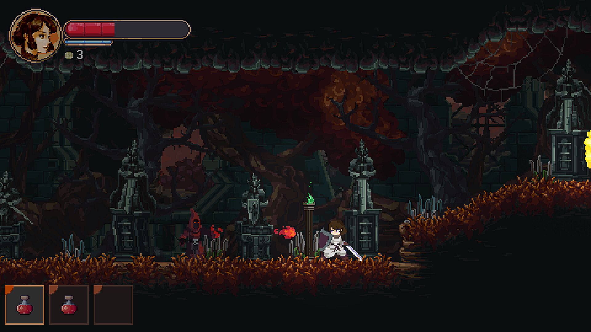 This game is a side-scrolling metroidvania adventure that centers around sword combat. Your task is to traverse an expansive kingdom, encounter new friends and enemies, engage in battles with formidable bosses, and enhance your character's abilities through leveling up.