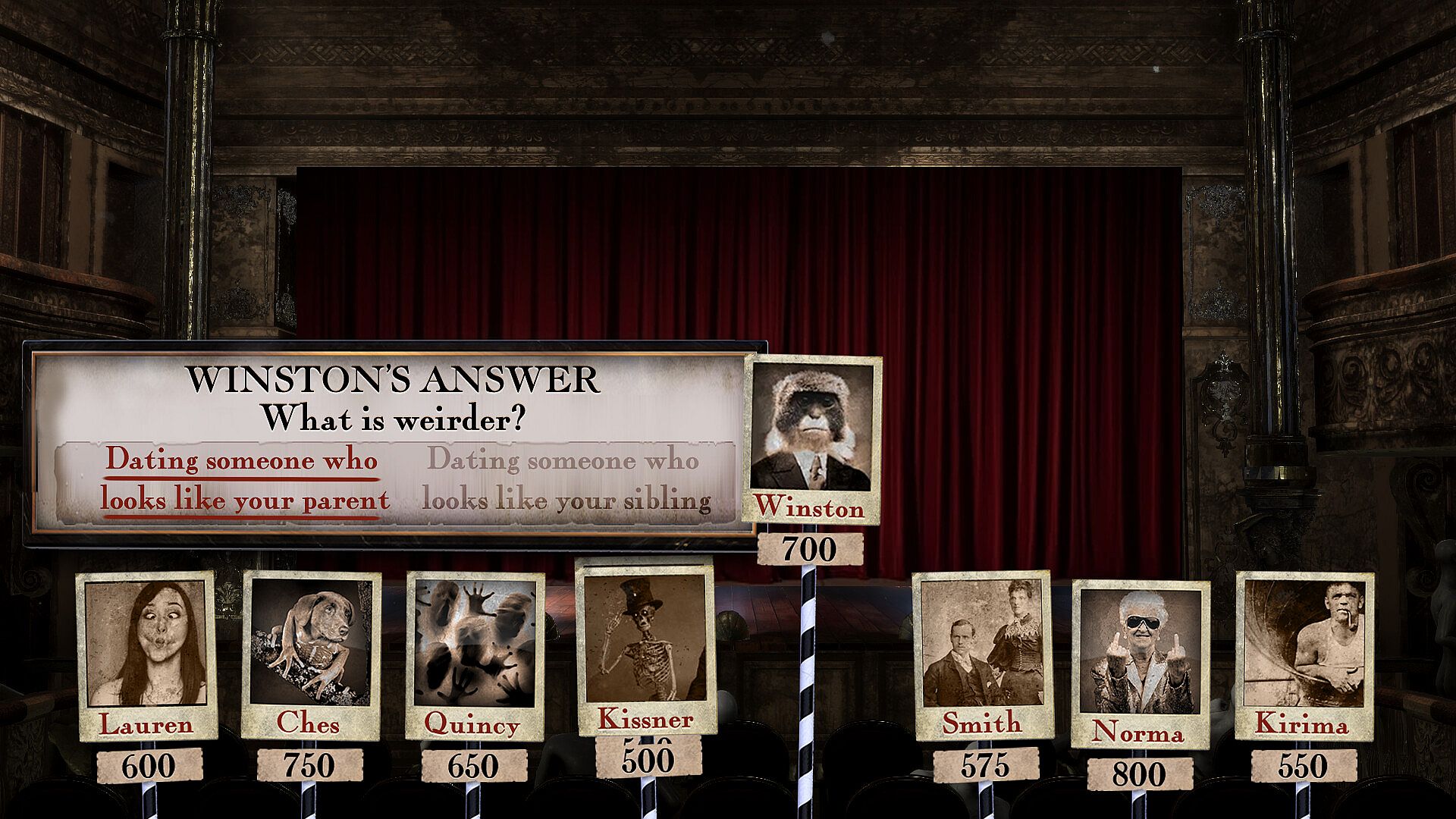 Enter Wick’s wicked world where he’ll put you through your paces to escape his monstrous gameshow. Take on six savage rounds, each introducing a completely new merciless challenge guaranteed to give you and your friends a game night to remember. Only those who are worthy will make it out with their soul…