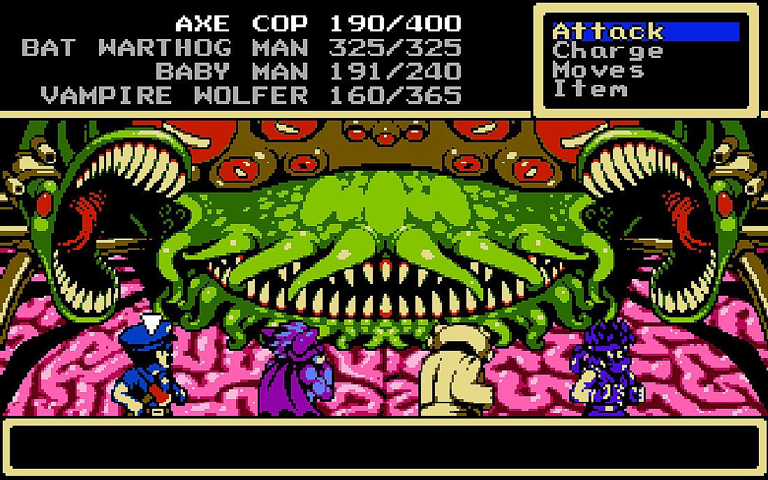 Play as Axe Cop and his team in this classic retro RPG! Take on challenging missions against his most devious enemies such as Bad Santa Claus, Dr. Stinkyhead, Dr. Doo doo and more! The Axe Cop Game is great for casual and hardcore RPG gamers alike, offering plenty of strategy, quests and story for any gamer to sink their axe into!