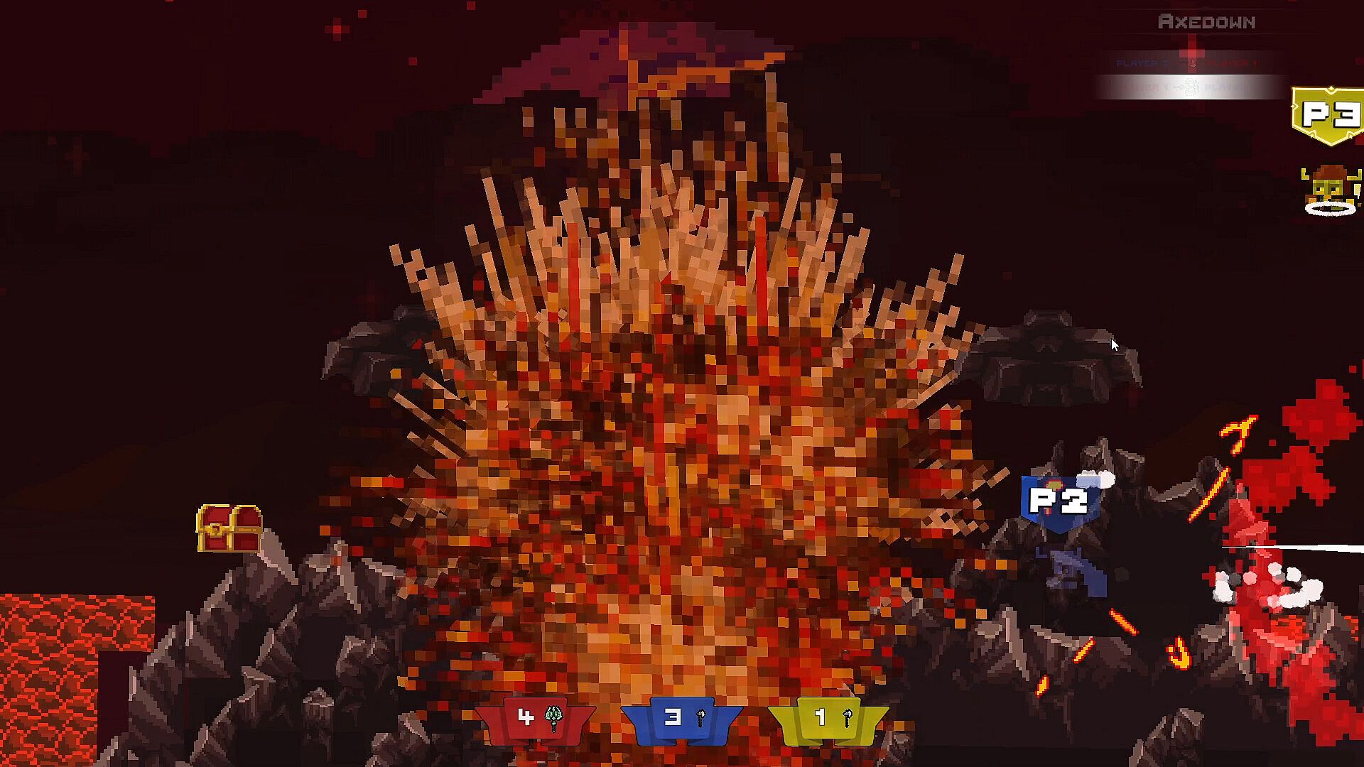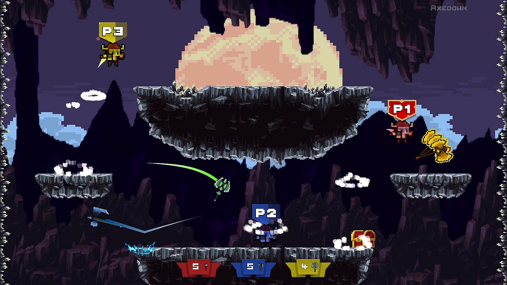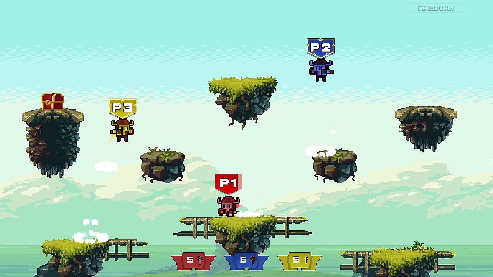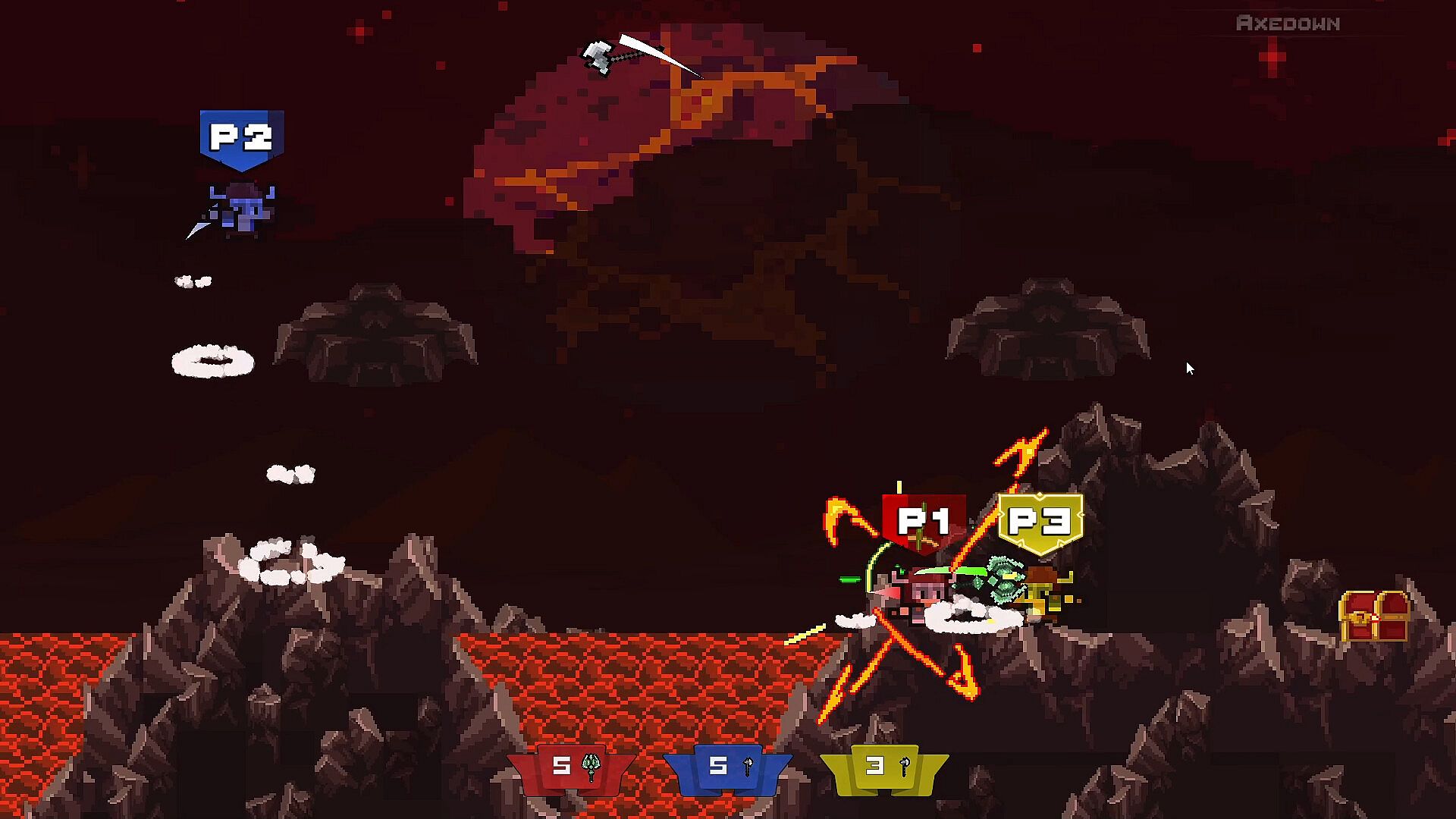 Push friends off the screen in this 2D indie platform battler using throwable axes in varied shapes. Jump and dash across arenas to dodge attacks while landing hits that send opponents flying. Open treasure chests during battles to grab powerful axe upgrades and gain the edge. Six arenas and six axe upgrades start locked behind Steam achievements, with three axes and four arenas available from the outset. Play local multiplayer for up to six players-mixing controllers-or go worldwide via Steam Remote Play. Modes include Axedown for survival with limited lives, timed Deathmatch for kills, and Treasure Hunt for chest points, plus team variants. Casual action fans love the chaotic, friend-focused brawls.