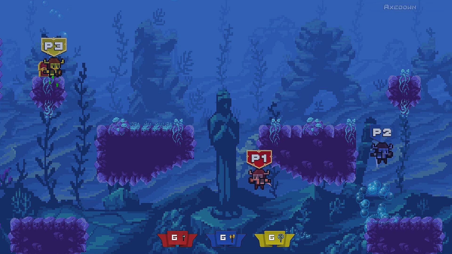 Axe Me Down comes with six Arenas, six Axe Upgrades and six different gamemodes: Axedown, Deathmatch and Treasure Hunt, as well as their respective Team Modes.