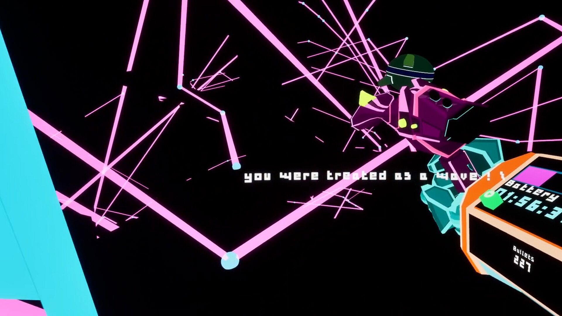 It is dark. You’re a robot with a low battery level – frantically looking for a charging station before your time runs out and you shut down. The only way you can see in the dark is by using your light gun to shoot bouncing balls that leave neon glowing stripes which reveal the environment.