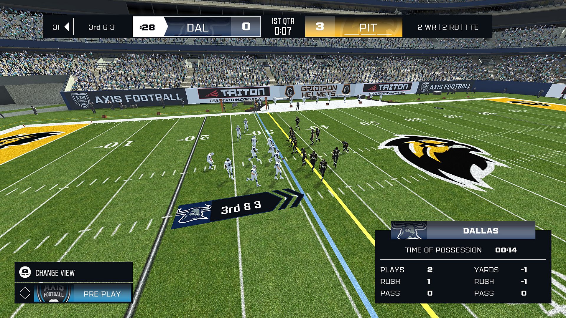 - Team playcalling strategy editor: change which types of plays are called on a variety of down and distances.