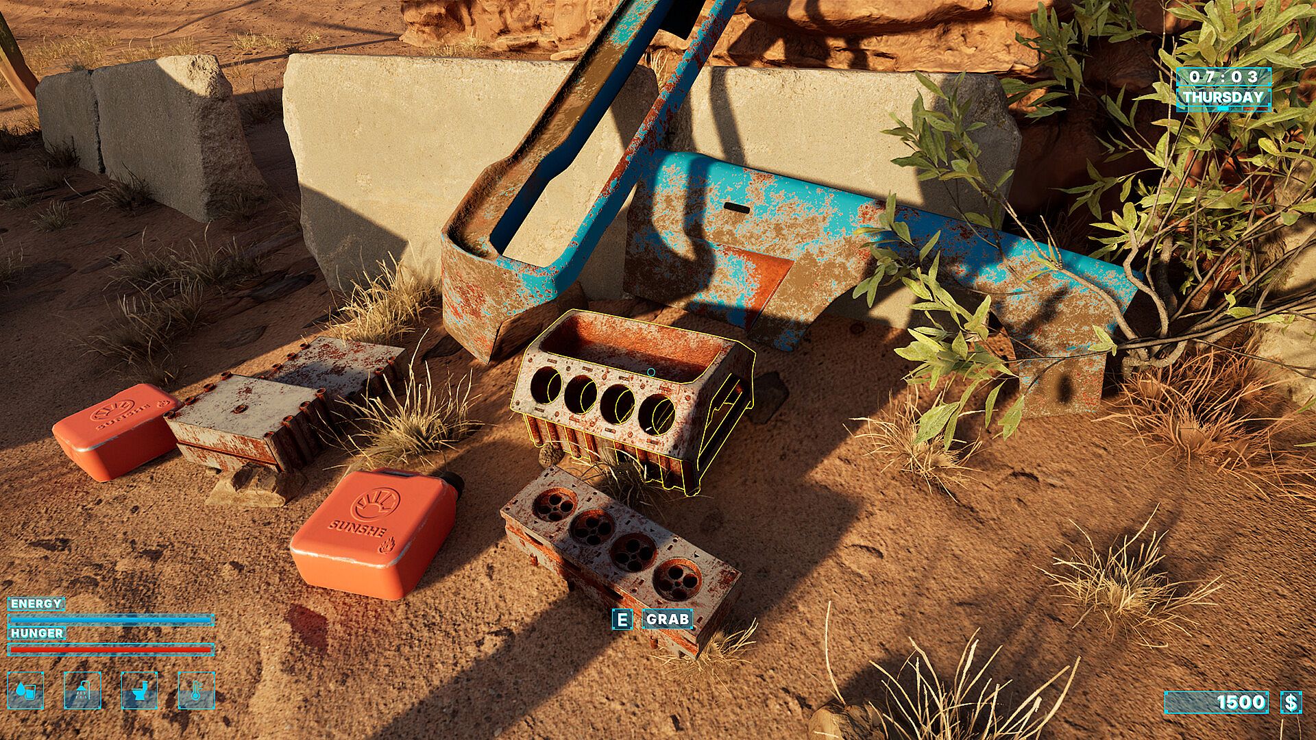 • Realistic physics: every part has weight and takes up space. There are no invisible inventories here. Everything you find will have to be physically transported in the trunk, loaded onto the roof, or stored in the garage.