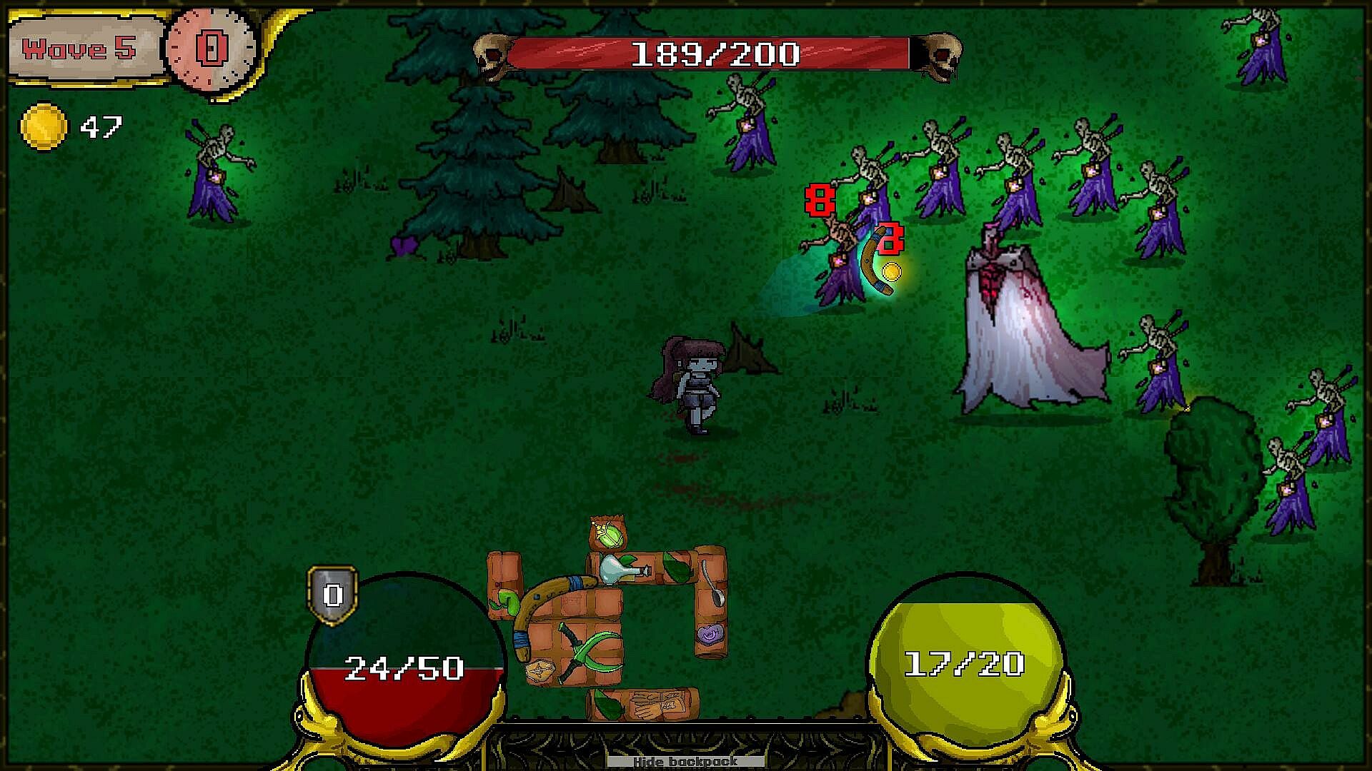 Buy from the merchant and combine different weapons/clothing/amulets and expand your backpack to incredible sizes. Create a class that you like: start as a warrior with great stamina or rebuild into a life-stealing mage, or maybe you like to develop through creature summoning or marksmanship? Your choice is limited only by your skill and luck!