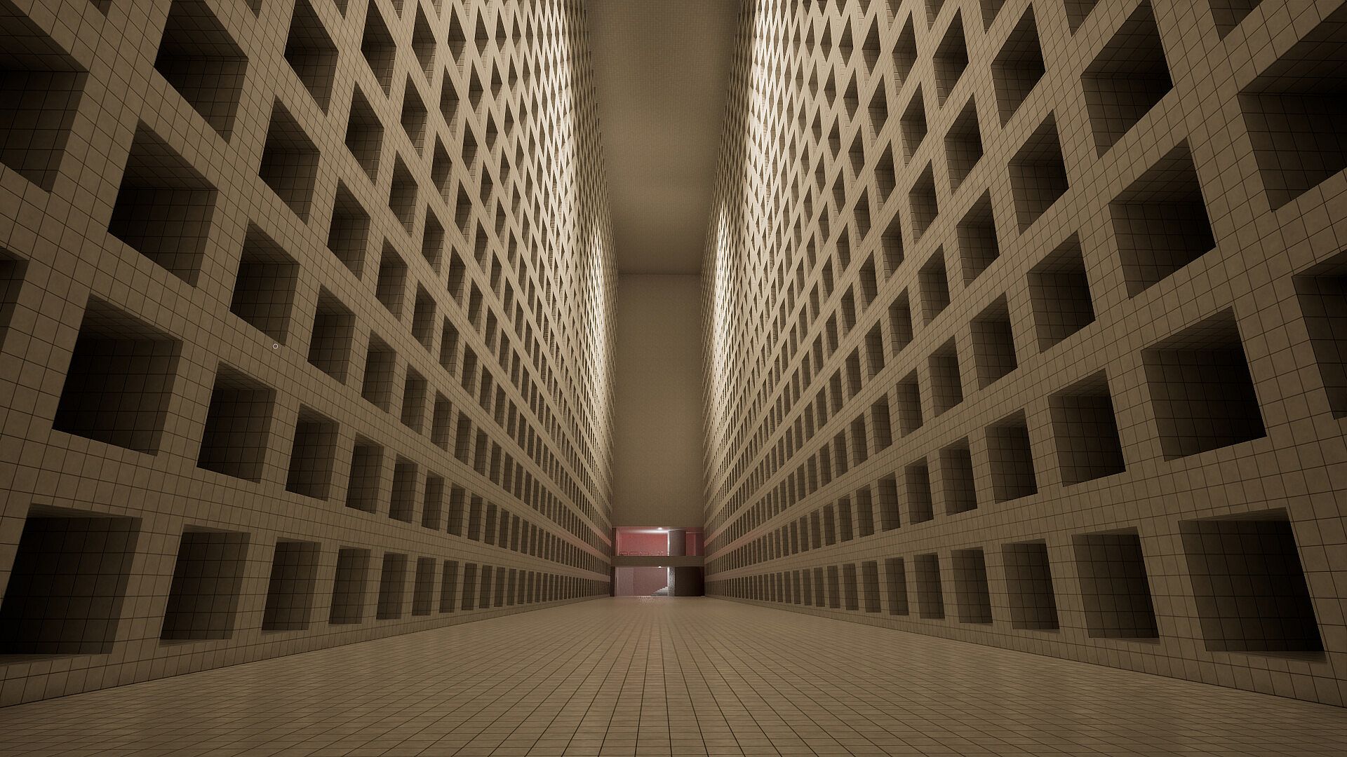 Each level has a unique aesthetic, the geometry is weird, yet somehow familiar, as if something tried to put it together, but that something is not human. You will have to traverse the spaces carefully, because the walls themselves will try to kill you.