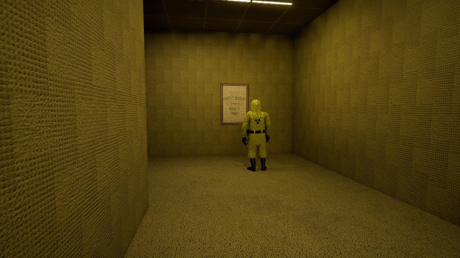 Backrooms Anomaly is a psychological horror game that tests your perception and attention to detail. Set in an endless office corridor inspired by the legendary Backrooms, you'll find yourself surrounded by yellowed wallpaper, buzzing fluorescent lights, and the unsettling feeling that something isn't quite right. A mysterious figure in a hazmat suit patrols these halls, adding to the tension as you work to uncover the truth.