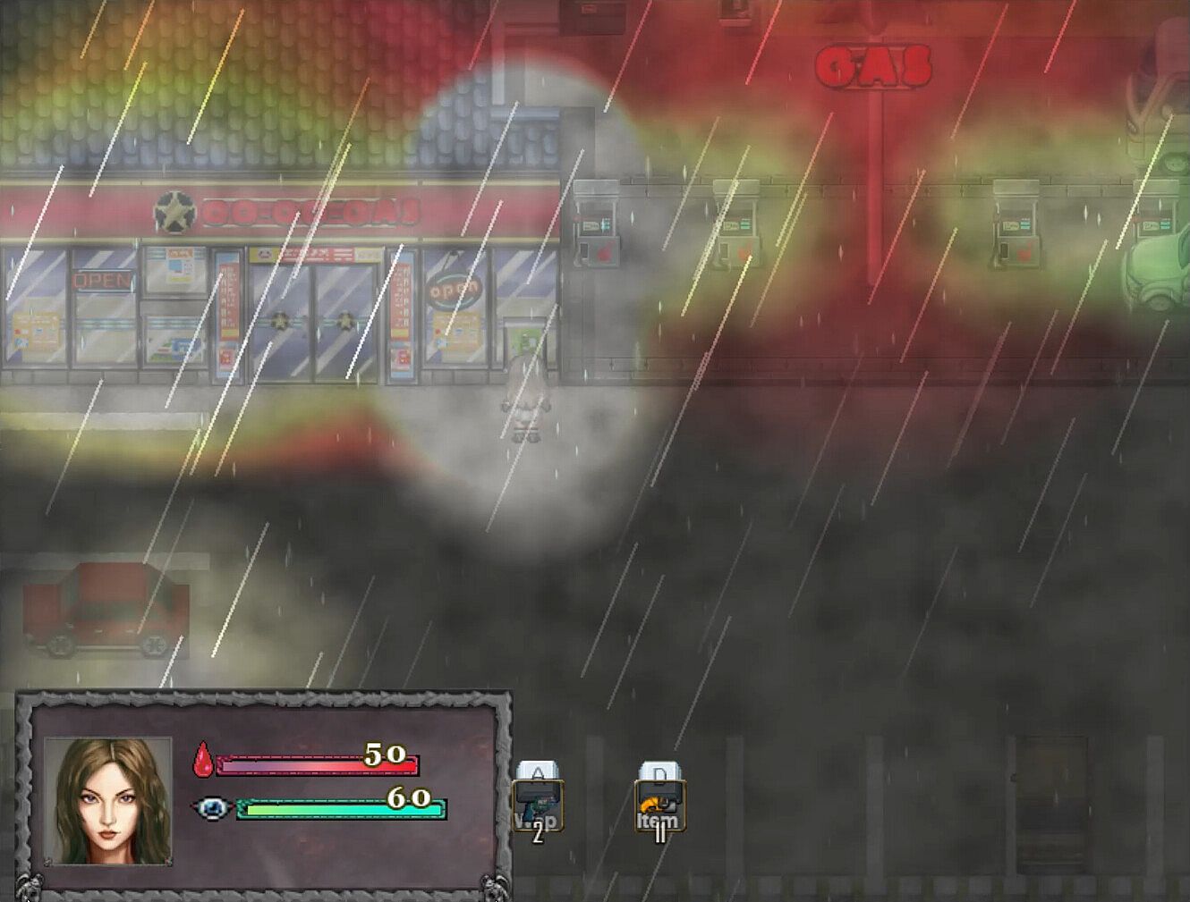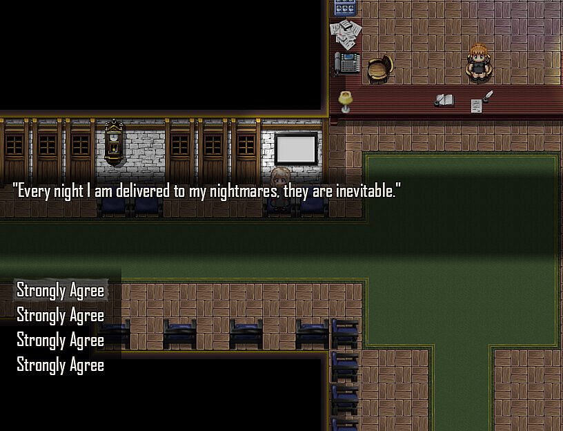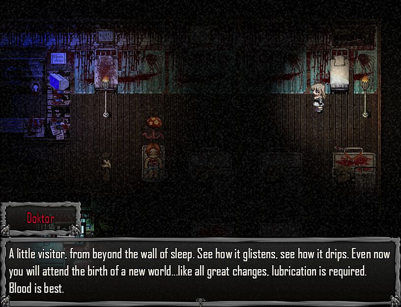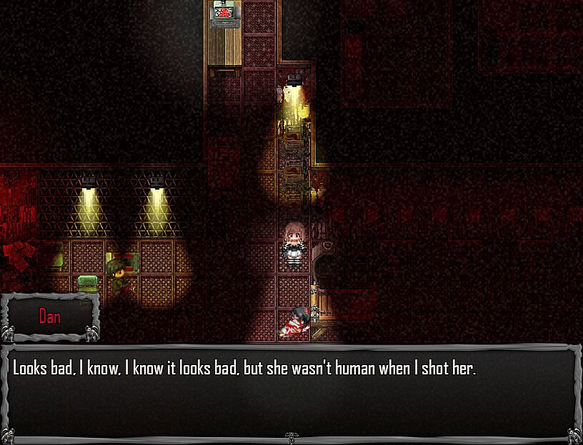 • Tense Real Time Combat. murdered sleep abandons the traditional turn-based combat one might expect from a typical RPG Maker game in favor of brutal and unforgiving real time ARPG combat. Defend yourself with sharp whatever sharp objects you find at hand, tasers, various firearms and a speargun. Increase your stats with better armor and sacred charms. Dodge enemy projectiles and sadistic traps by managing your limited Stamina Meter to quickly sprint. Be quick, and be careful, because Anna is fragile, and not just physically.