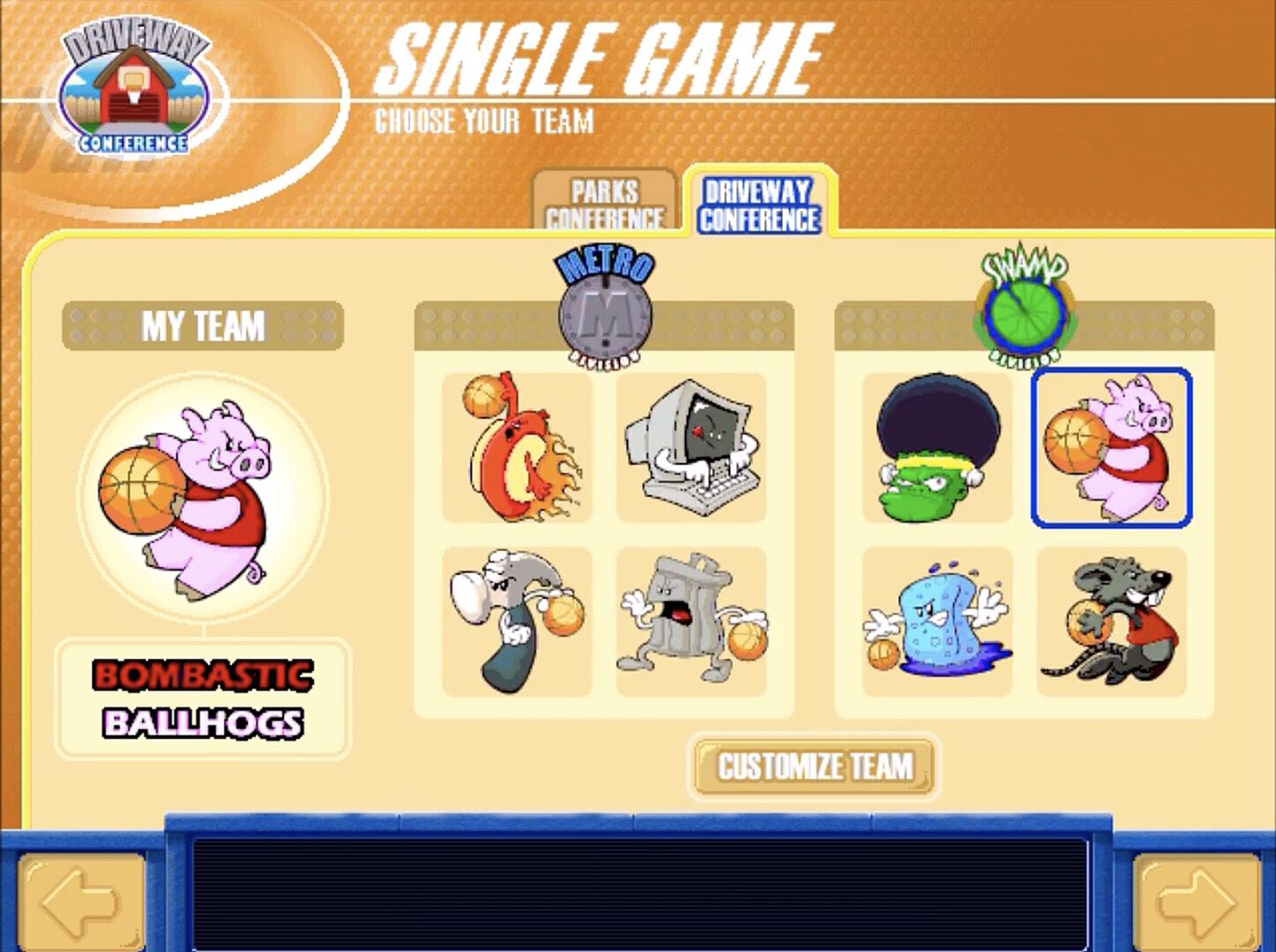 • Season Play: Pick your team name, uniform colors, and players to compete in the Backyard Basketball League. Manage the team through a basketball season for your chance to win the Championship!