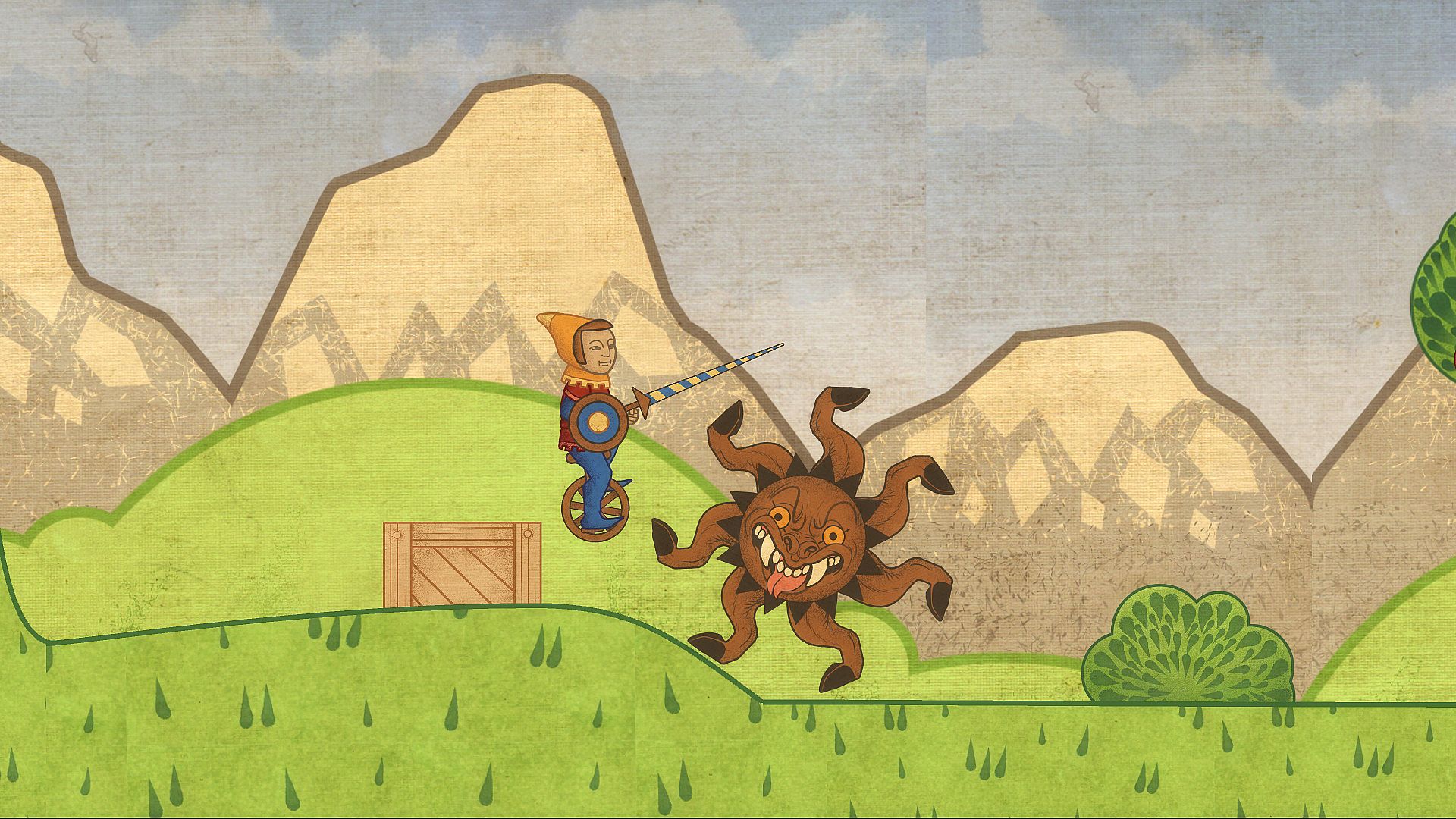 - Meet and fight mythical monsters from the past, where unicycle trials are taken to the extreme and lances sharpened like Monty Python jokes.