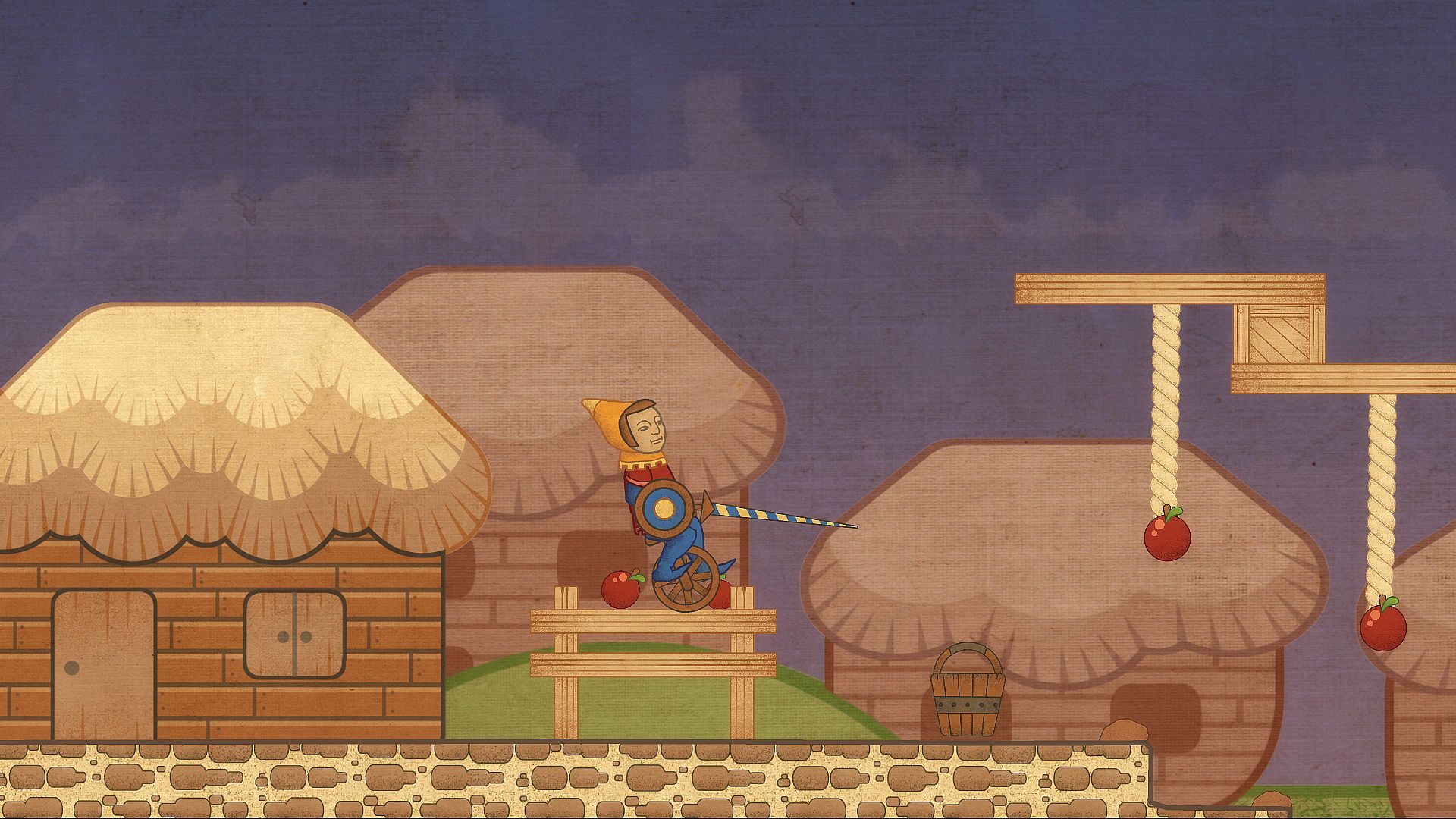 A poor squire dream to attend and conquer the kingdom’s jousting tournament. But because he’s poor, he cannot afford a horse. The unicycle happens to be close enough so the epic journey may begin!
