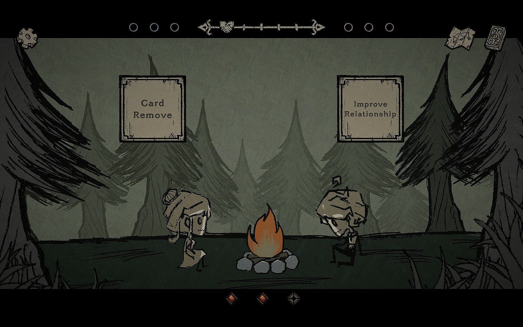 After each trial, the tilt of the scale affects the twins’ relationship. With strong Rapport, building hope becomes easier. In states of Conflict, it becomes much harder.